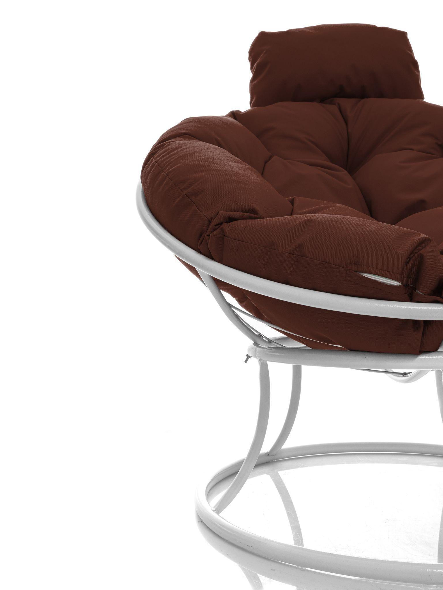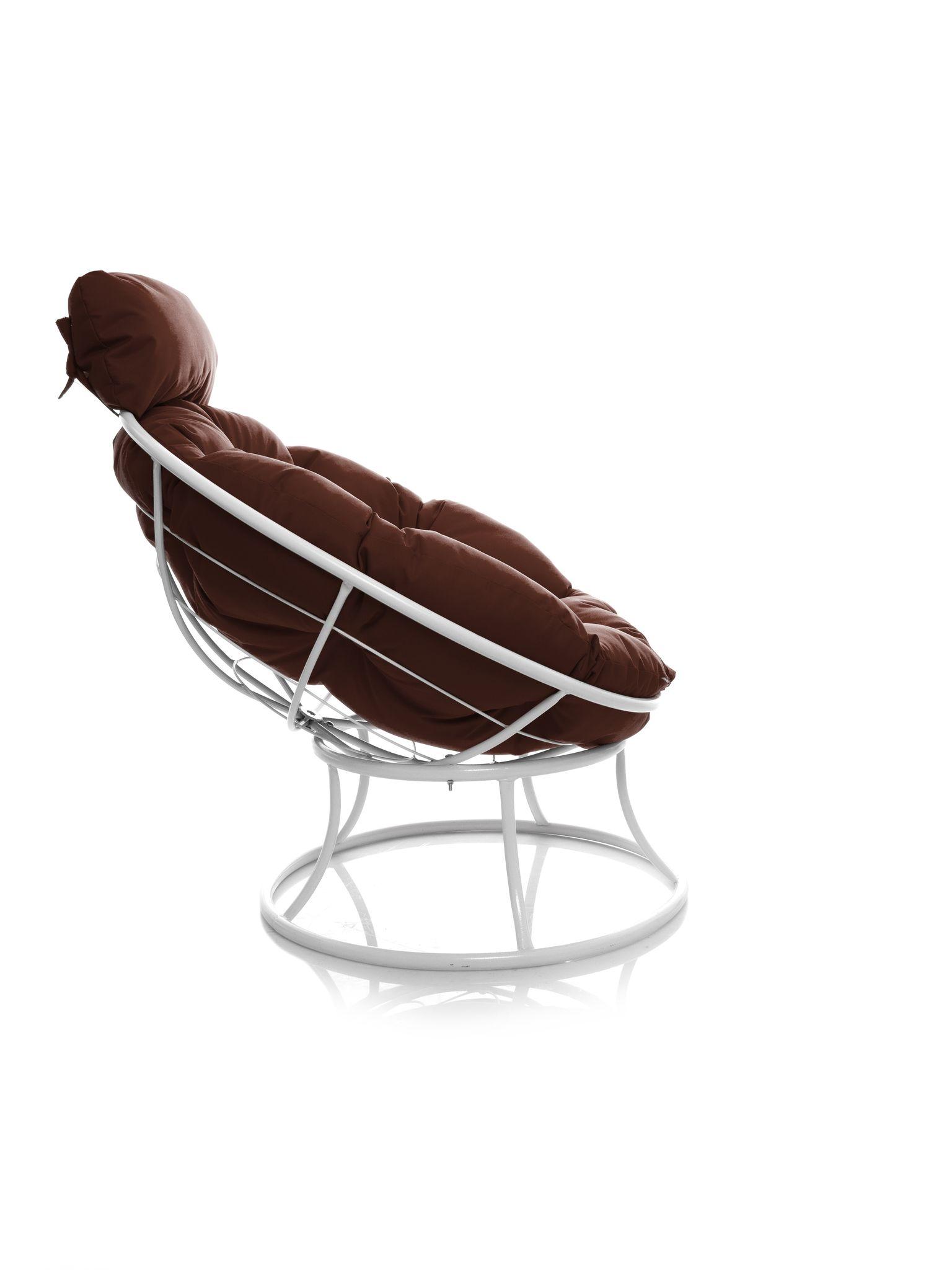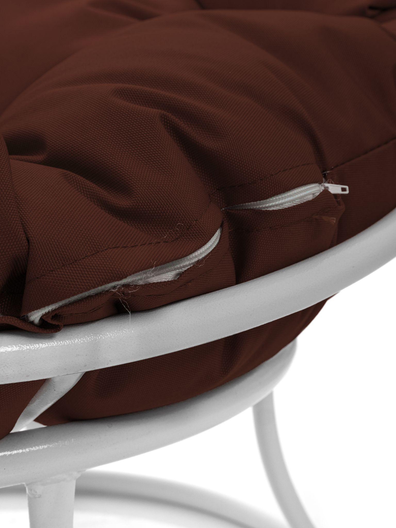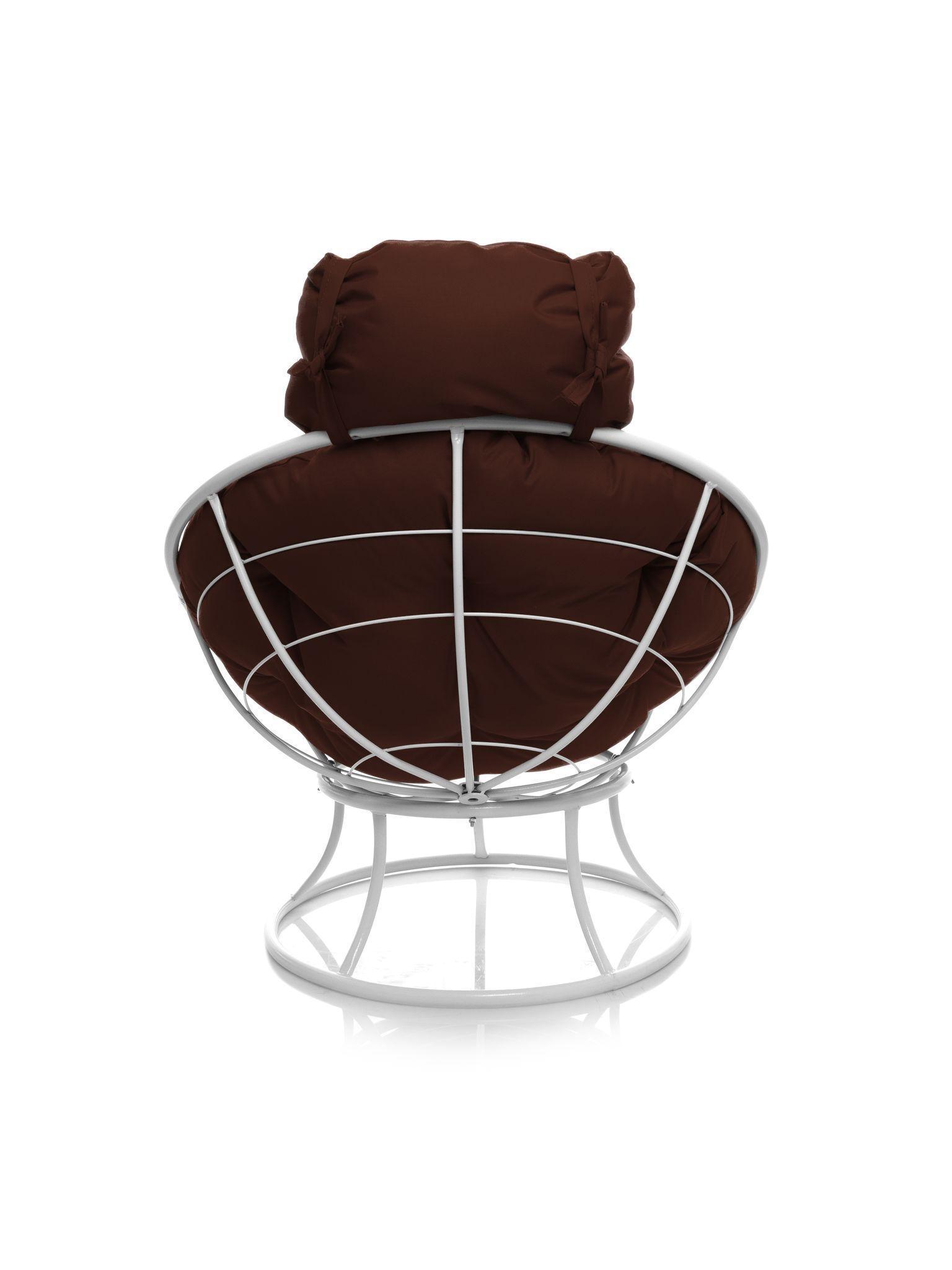 Кресло ПАПАСАН мини без ротанга белое, коричневая подушка
