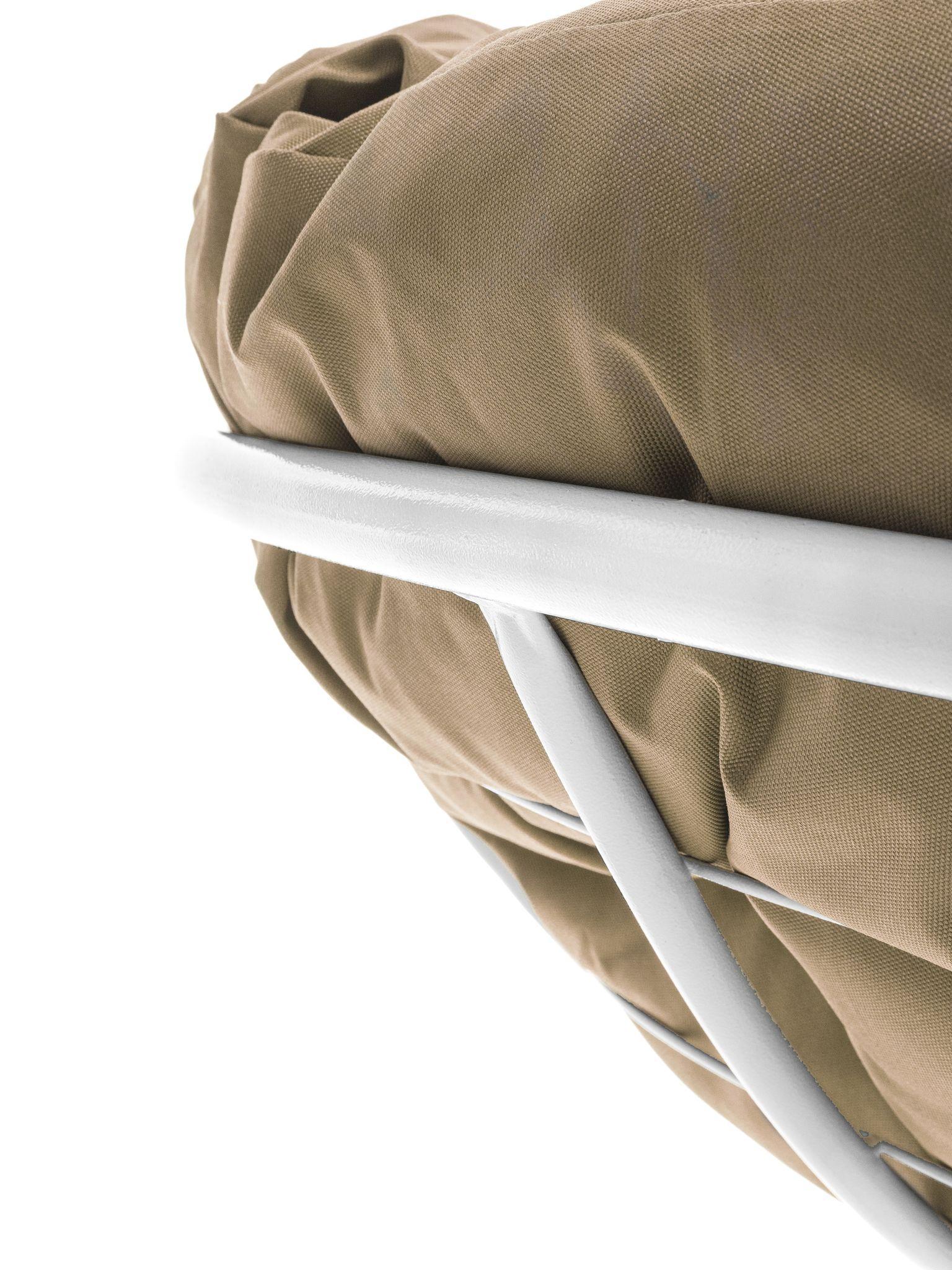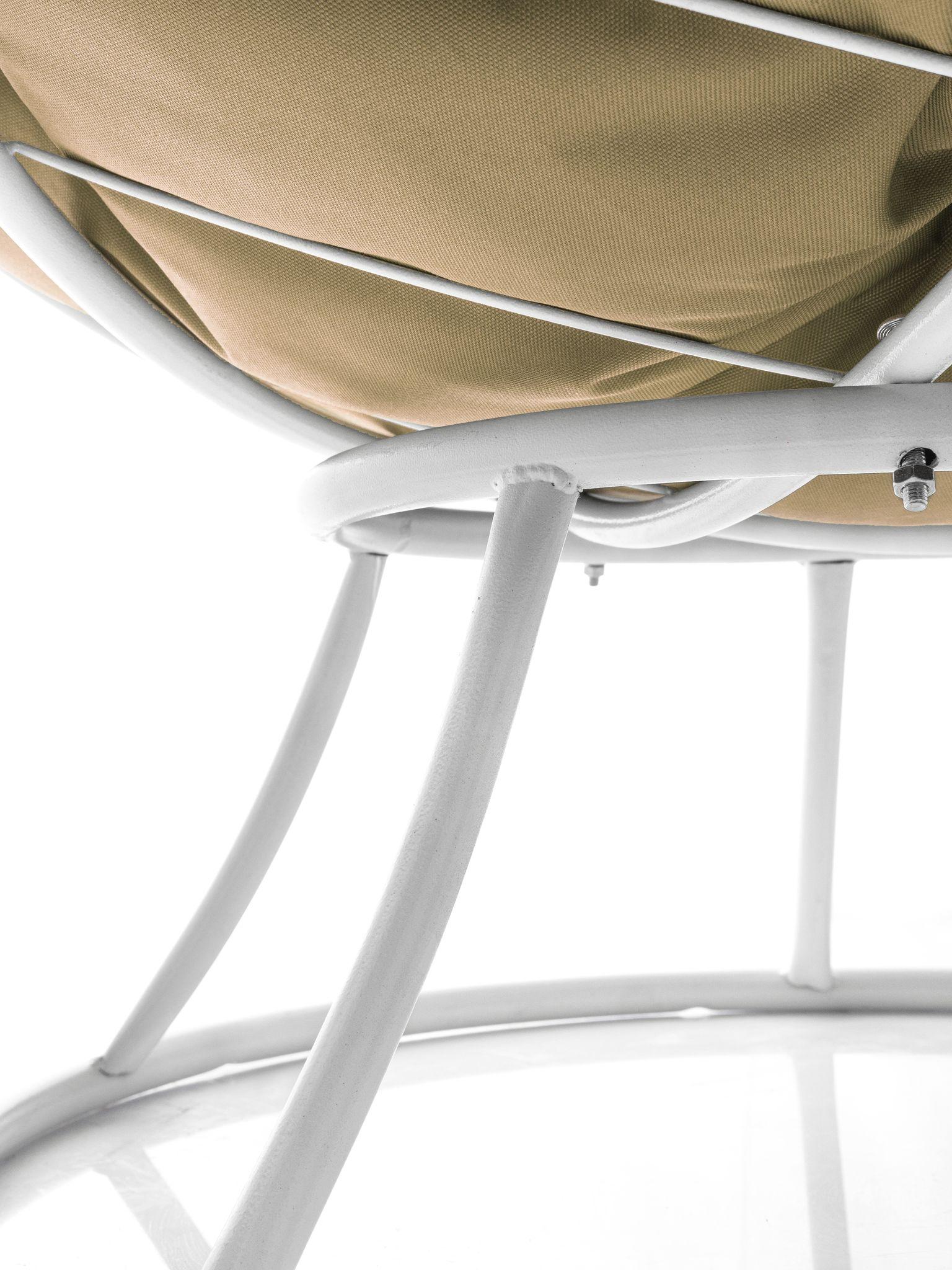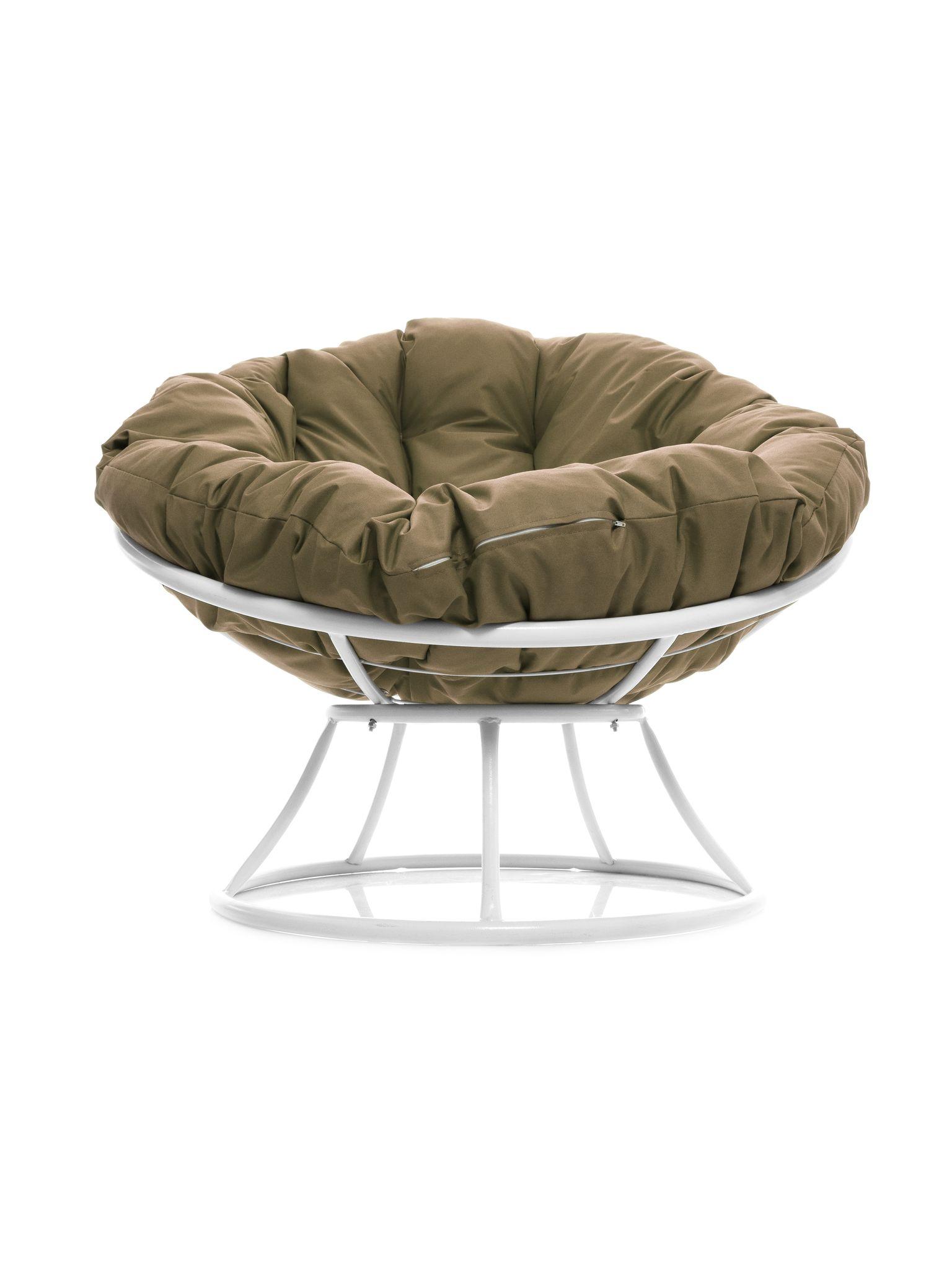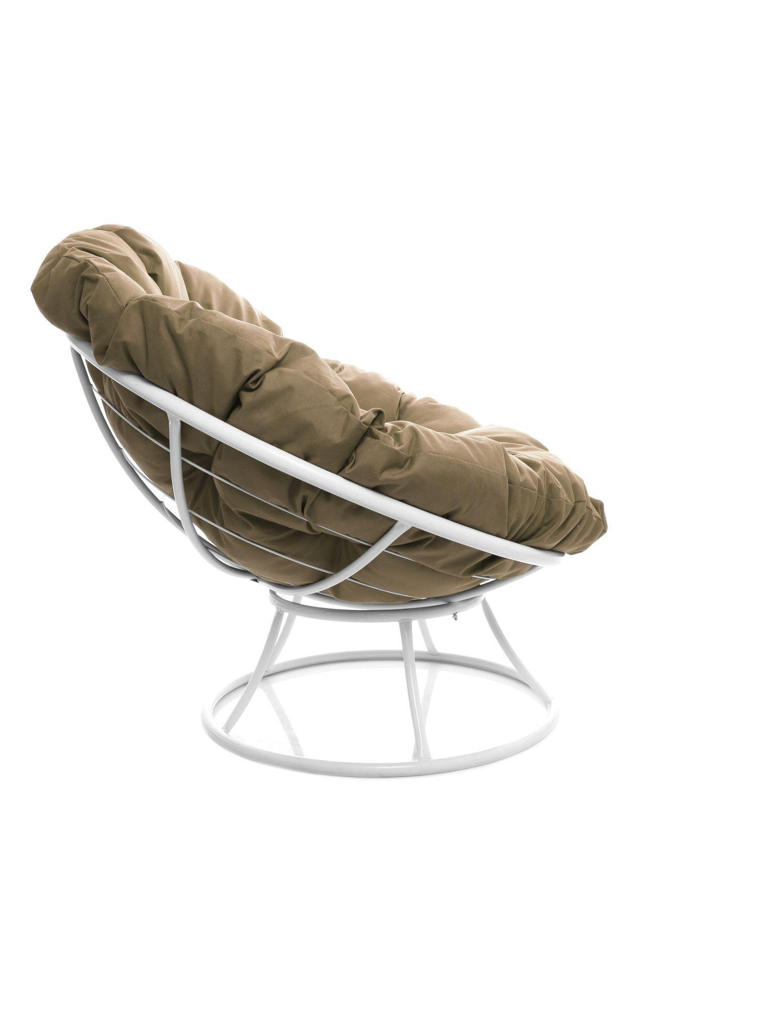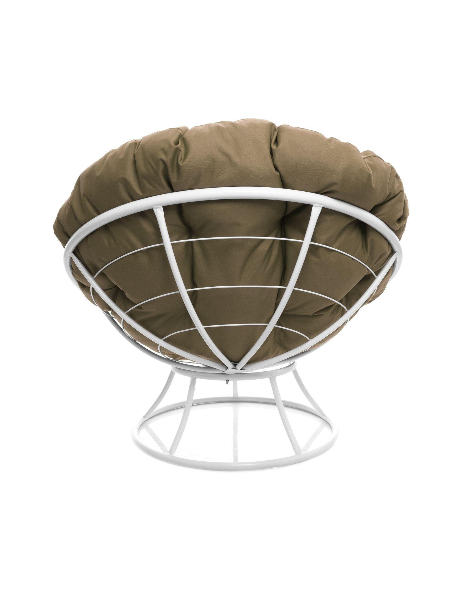 Кресло ПАПАСАН без ротанга белое, бежевая подушка