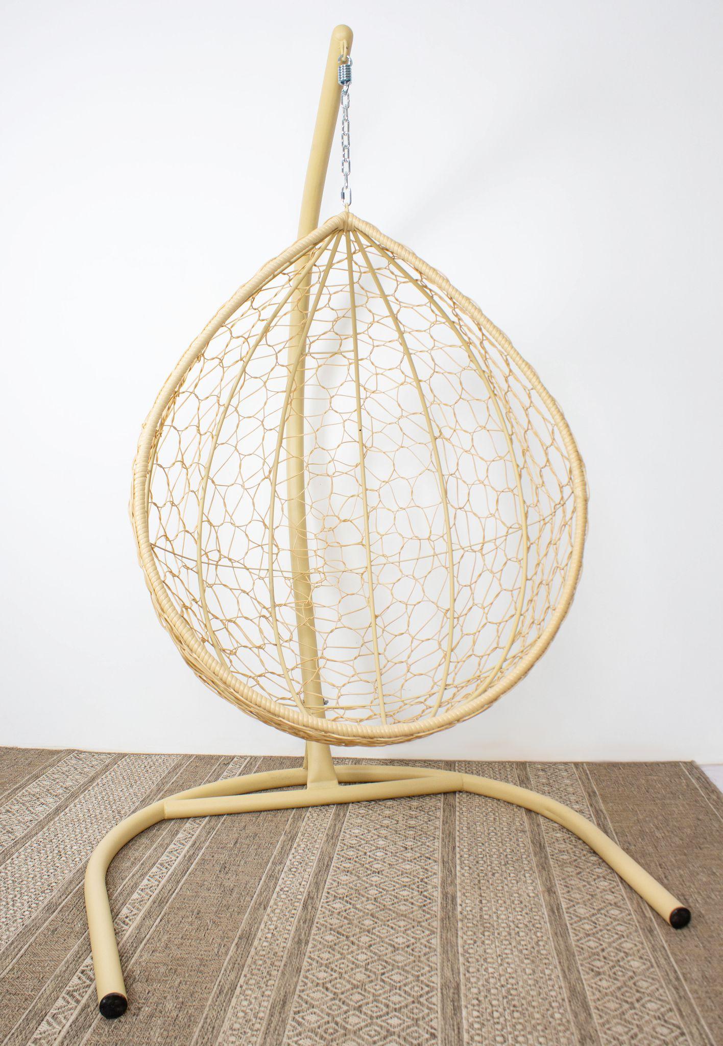 Подвесное кресло КАПЛЯ с ротангом бежевое, зелёная подушка