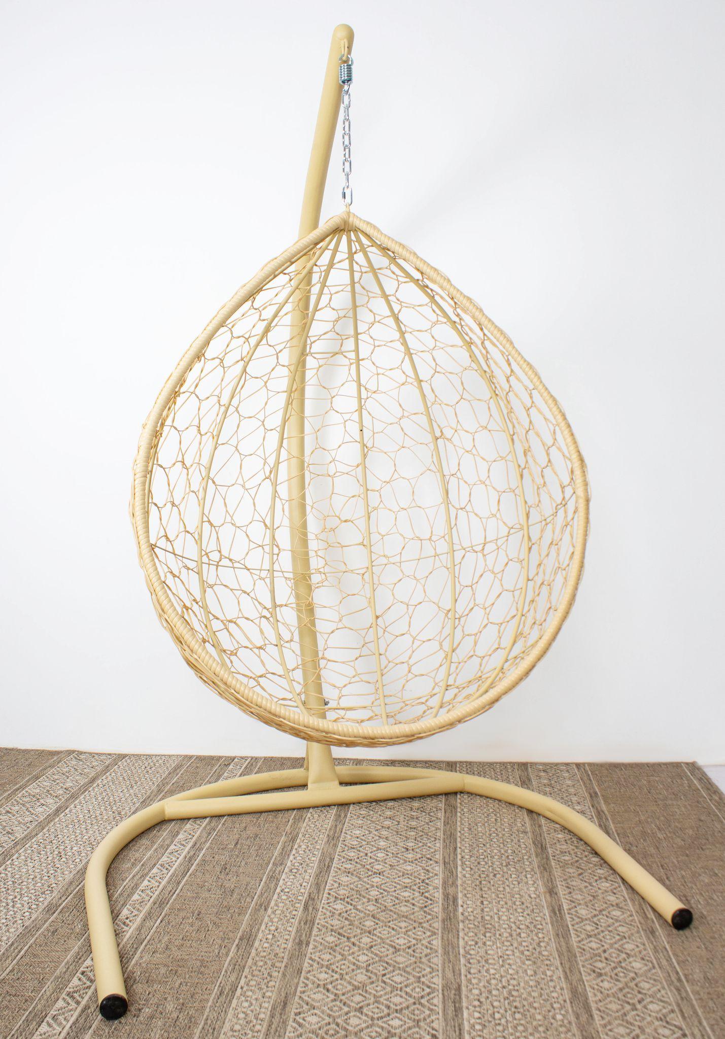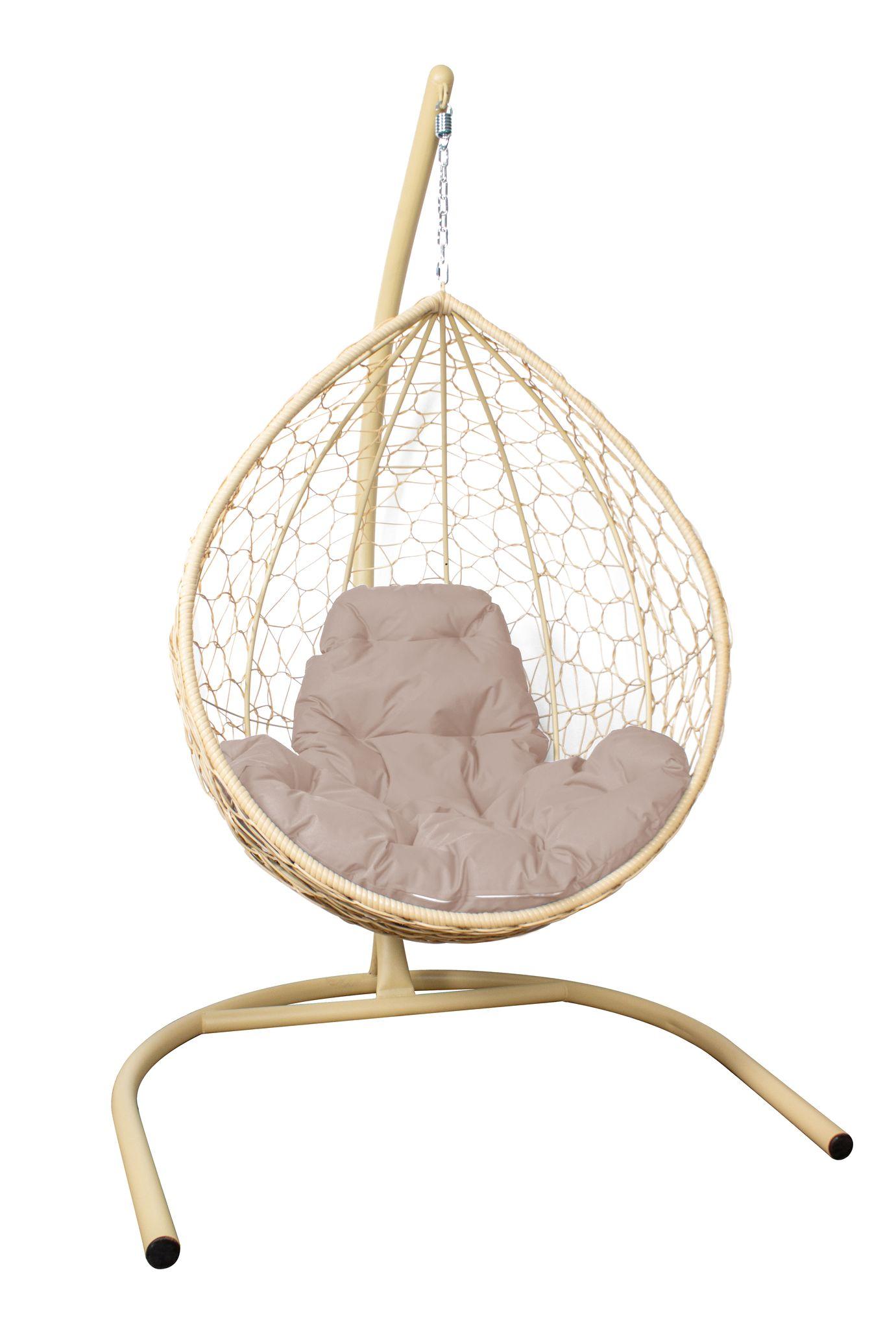 Подвесное кресло КАПЛЯ с ротангом бежевое, бежевая подушка