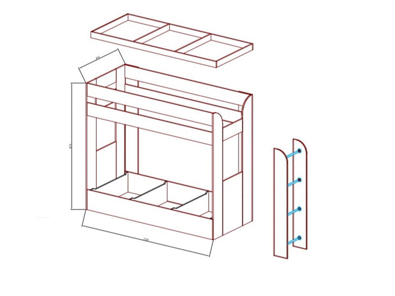 Кровать имеет спальные места 800 х 1900 мм вверху и 1200 х 1850 мм внизу.
