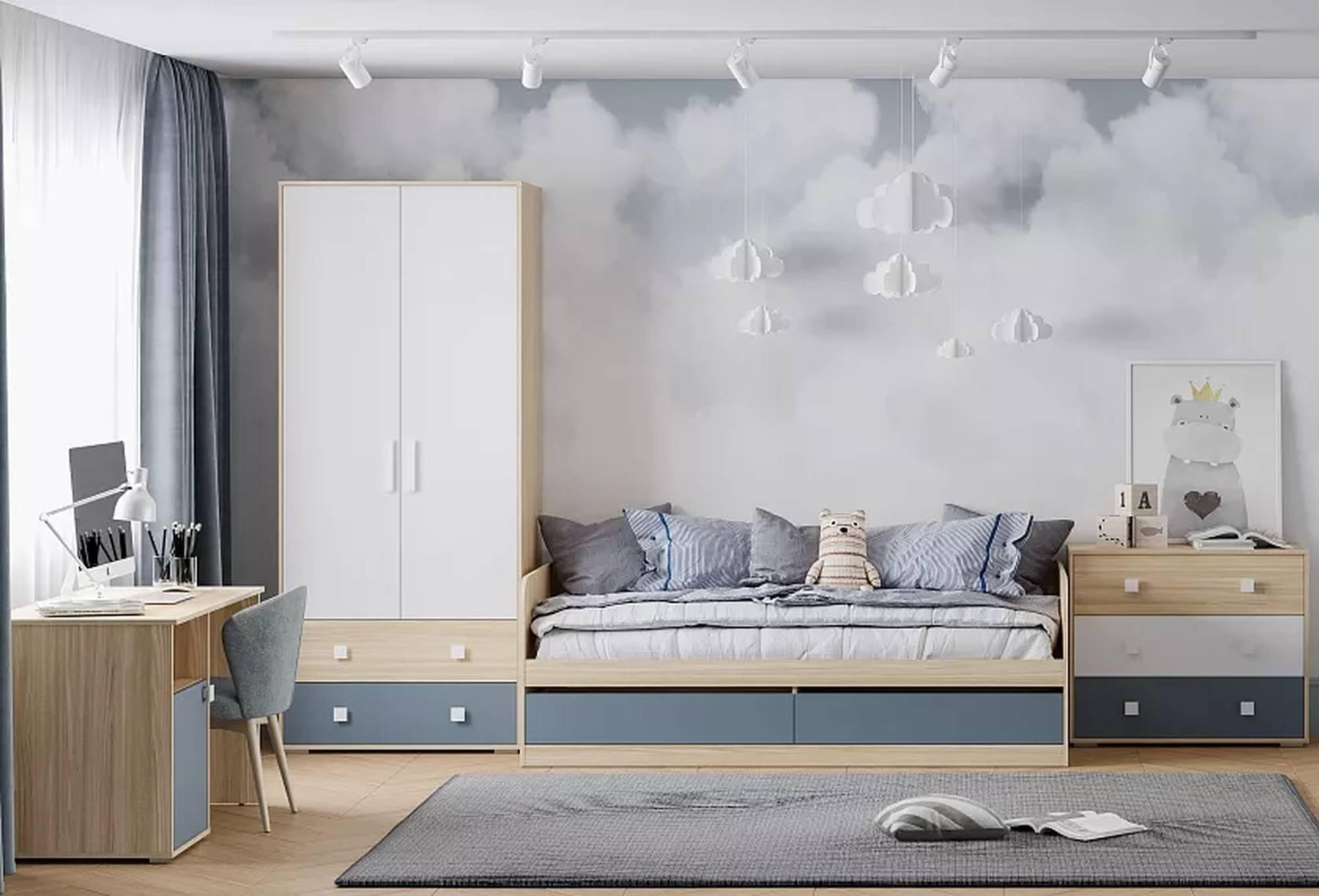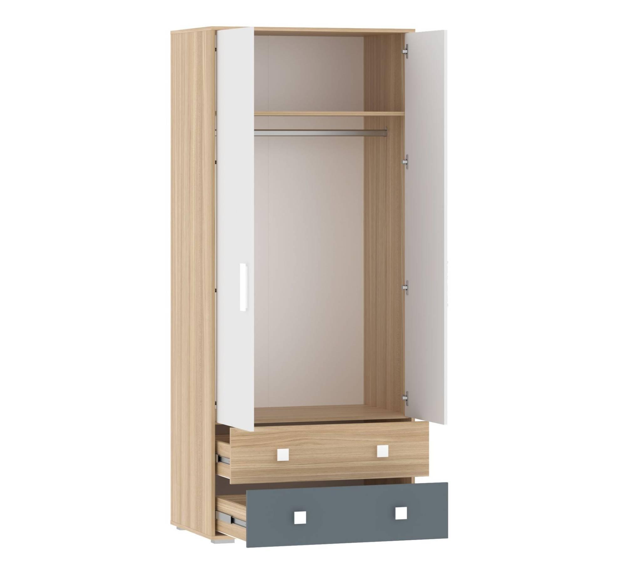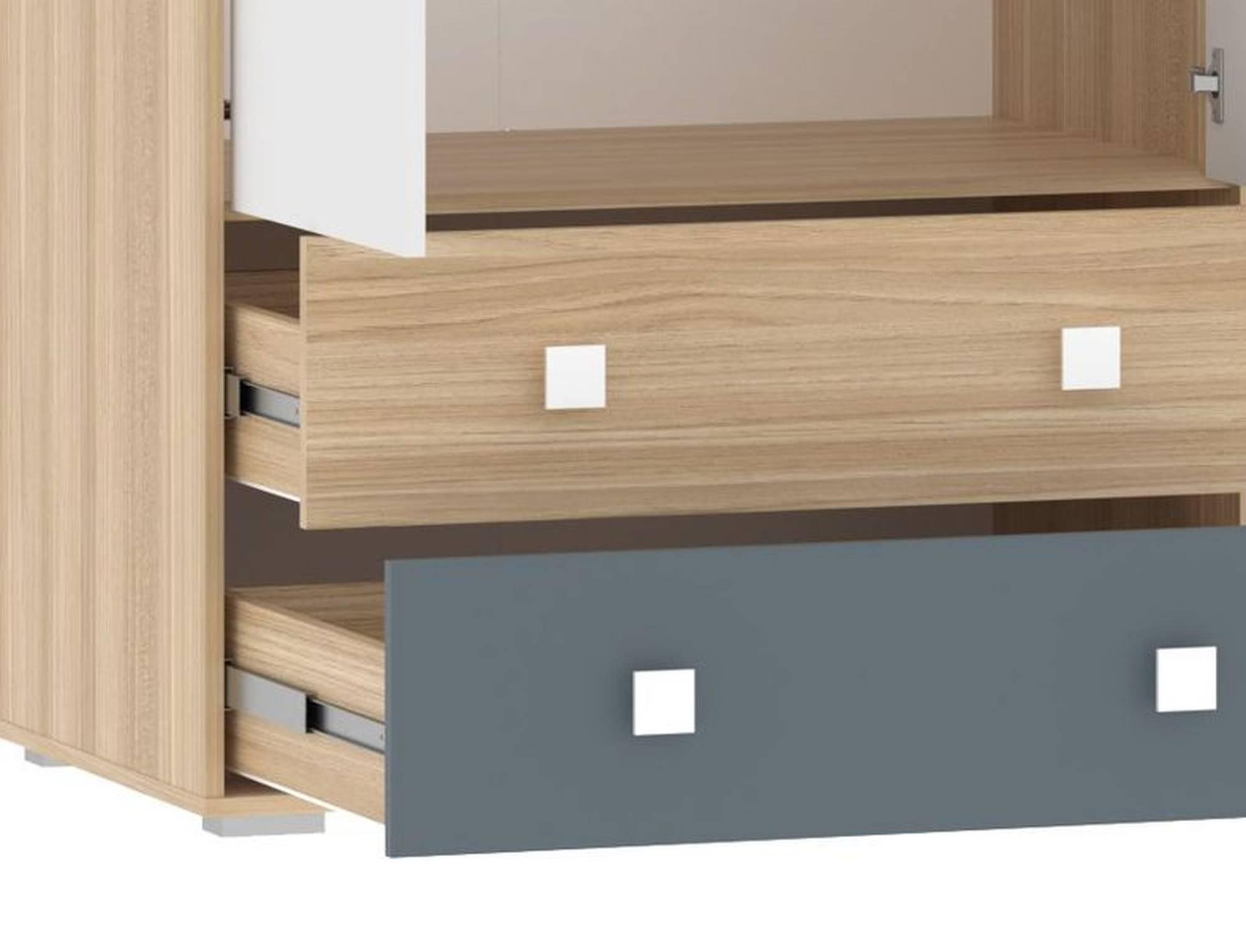 Конструкция шкафа комбинированная, т.е. включает в себя и штангу для плечиков, и ящики для хранения.