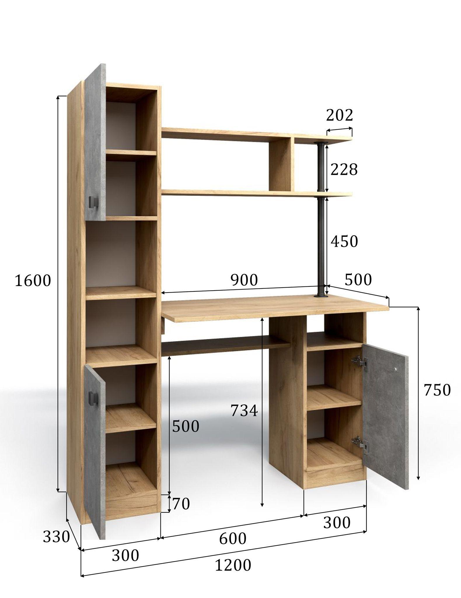 У стола есть удобный вместительный пенал. В правой части за дверцей расположена одна полка. Над столешницей предусмотрена удобная надстройка, при этом она не забирается пространства столешницы.