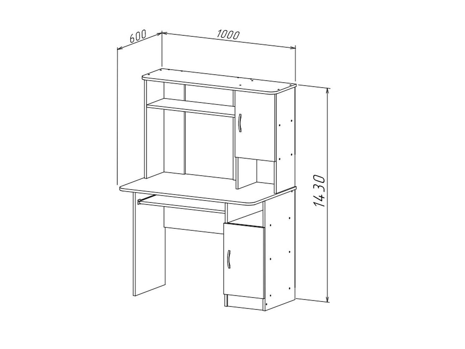 Под столешницей тумба с открытой полкой и распашной дверцей.