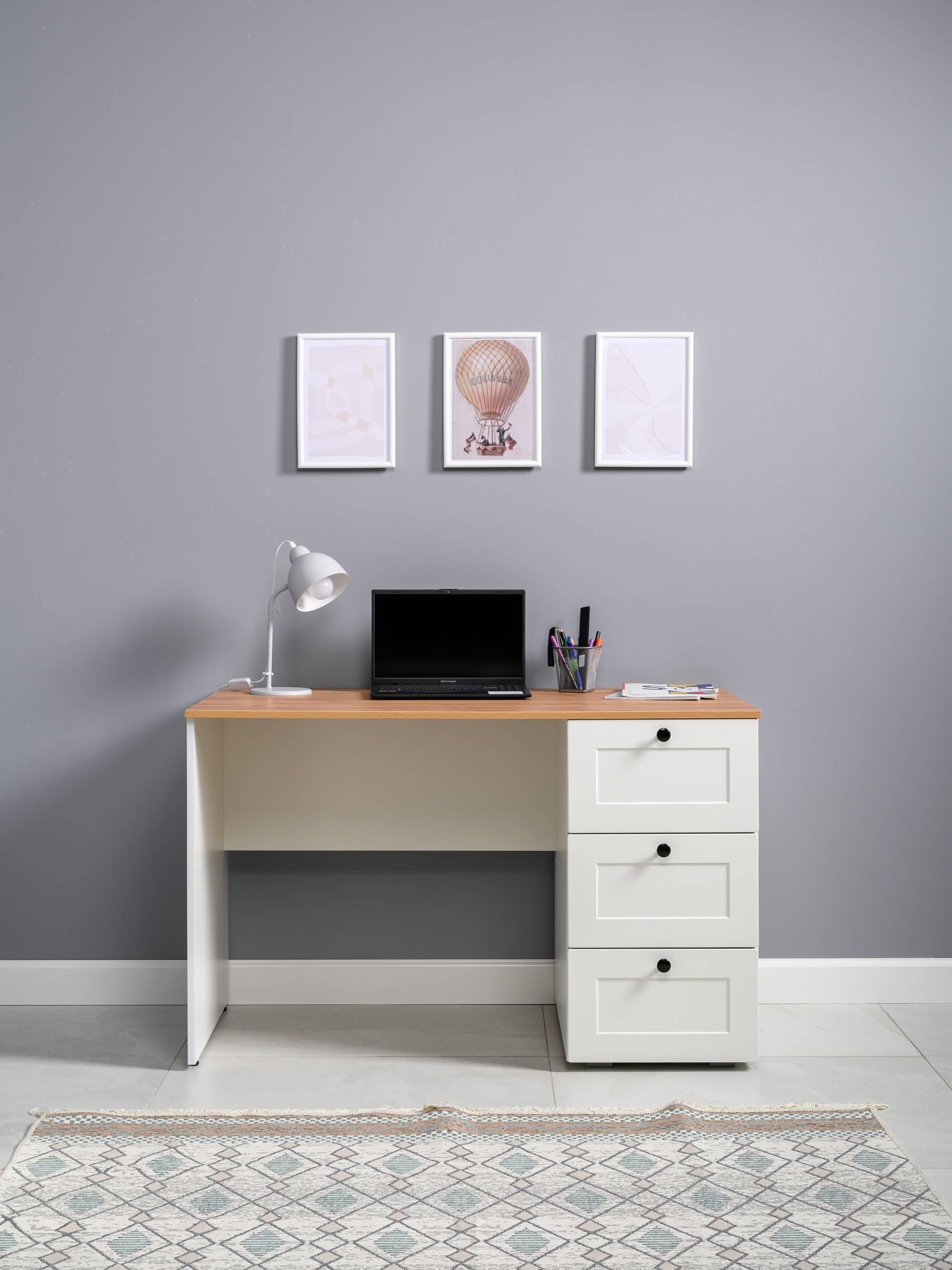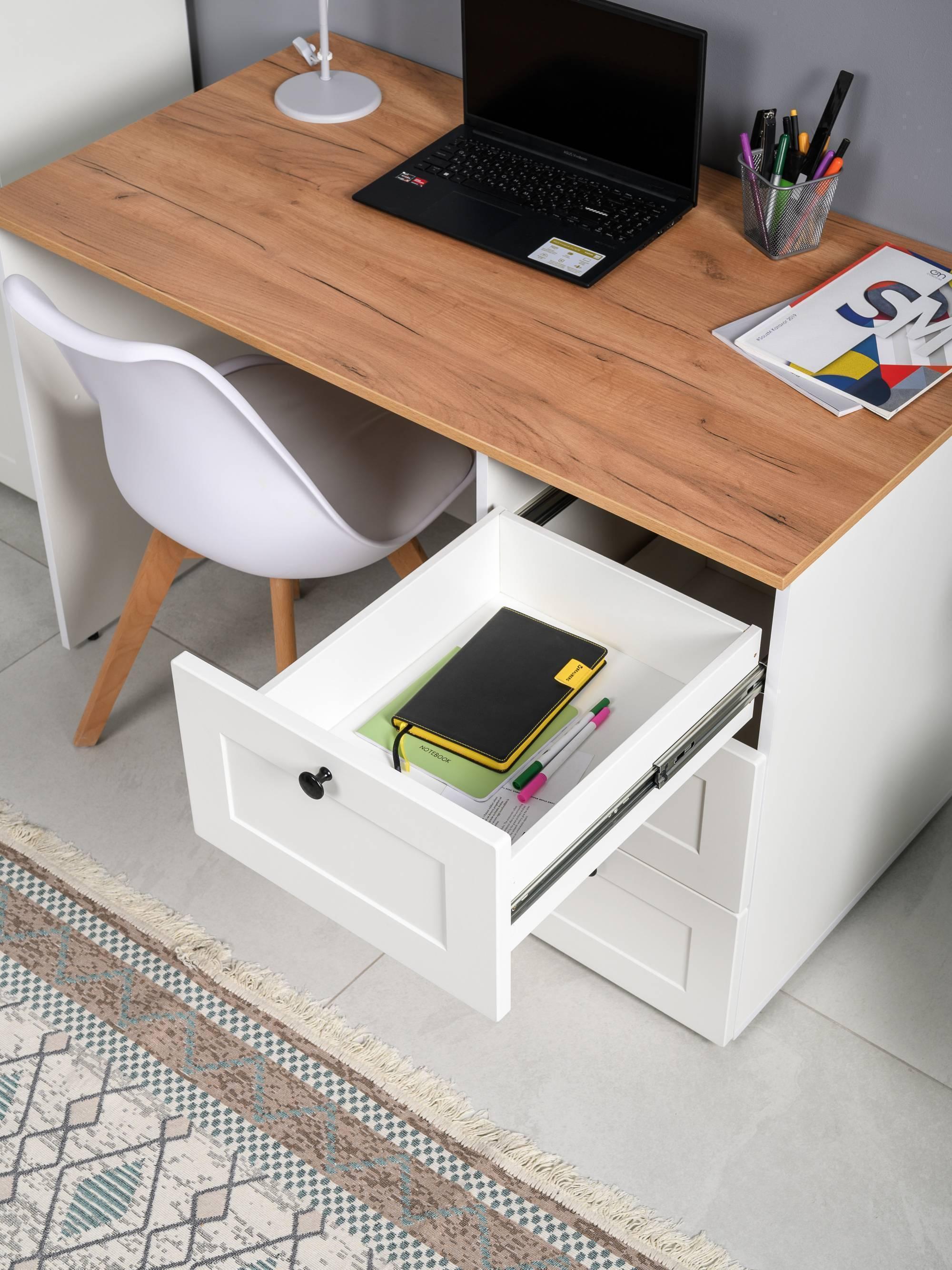 Стол письменный Остин 12.159, Белый PE шагрень/Дуб Золотой Крафт