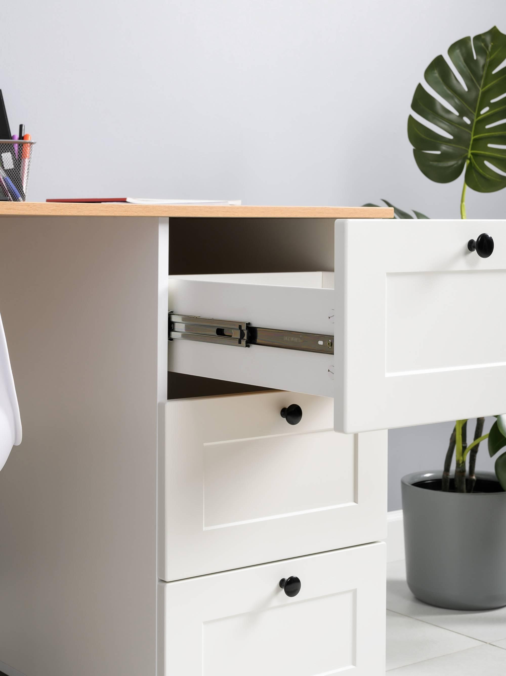 Сборка стола универсальная, ящики можно собрать как слева, так и справа.