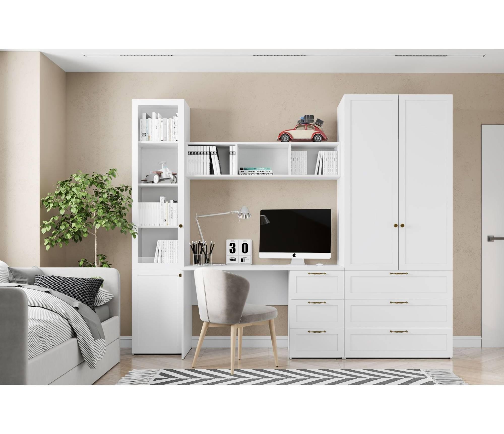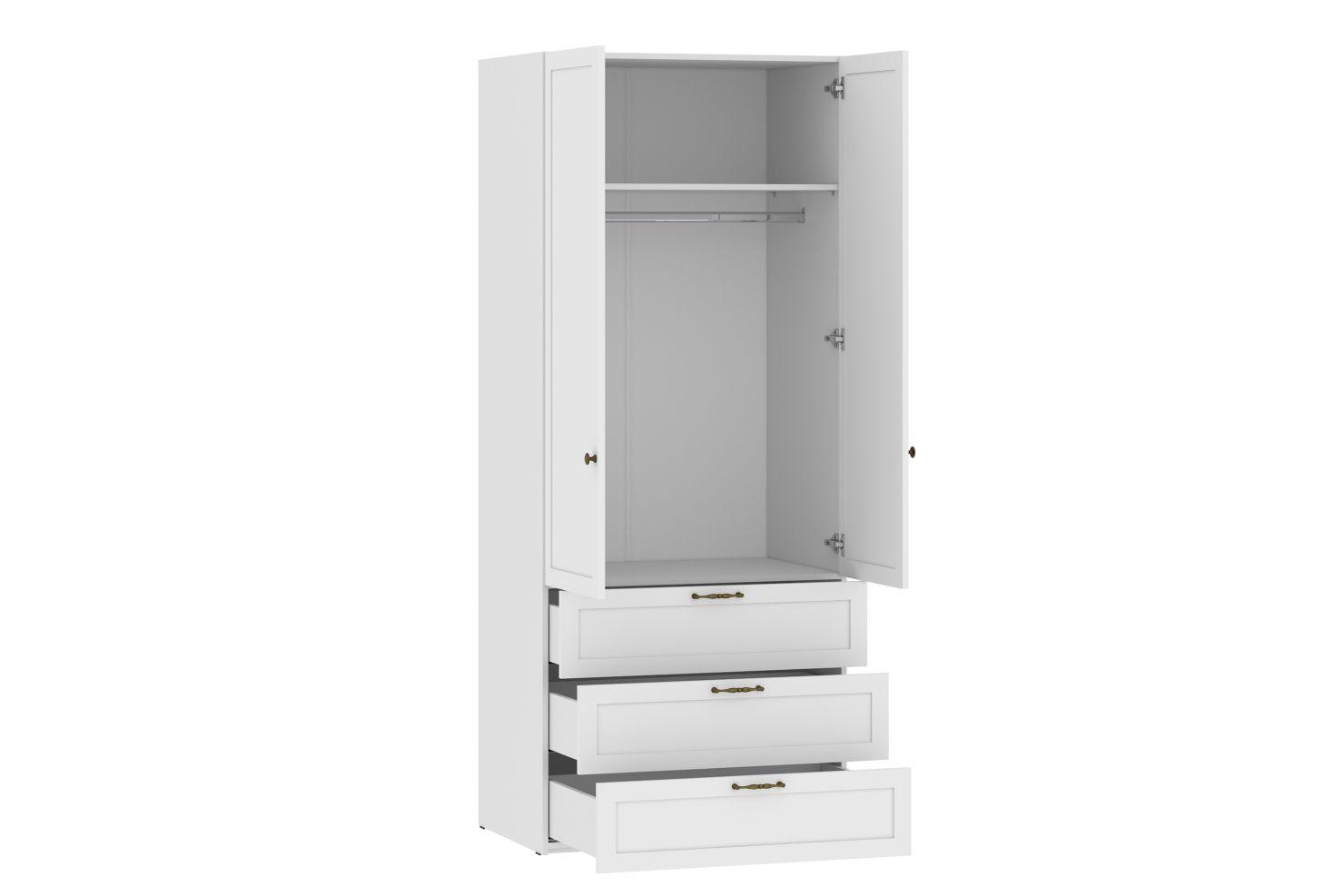 Конструкция шкафа включает в себя штангу для плечиков и 3 выдвижных ящика.