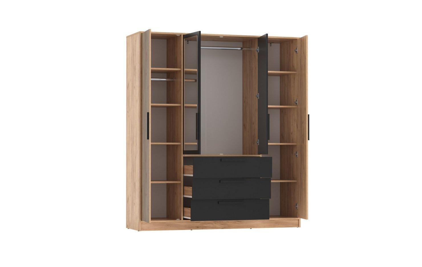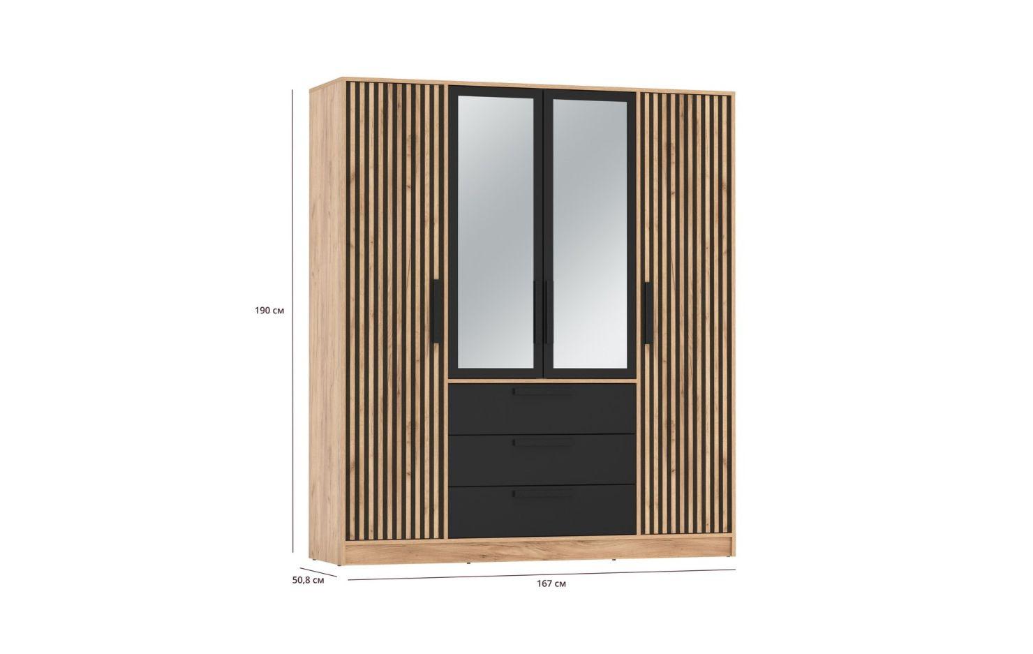 Шкаф для одежды 83.07 "Вегас" (4-х дв.) с зеркалом (ЛДСП Дуб золотой / ЛДСП Черный)
