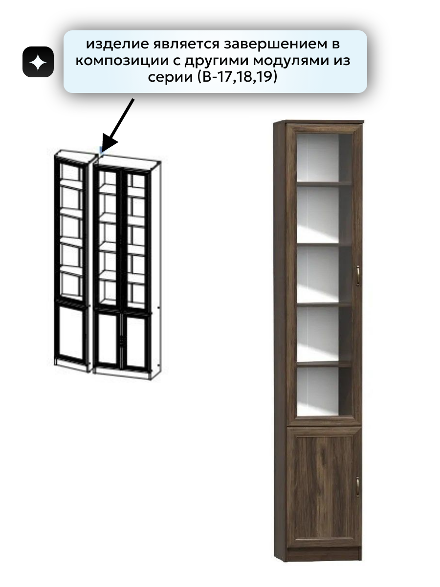 Обратите внимание! Изделие торцевое и является завершением в композиции с другими модулям из серии библиотеки (В-17,18,19).
