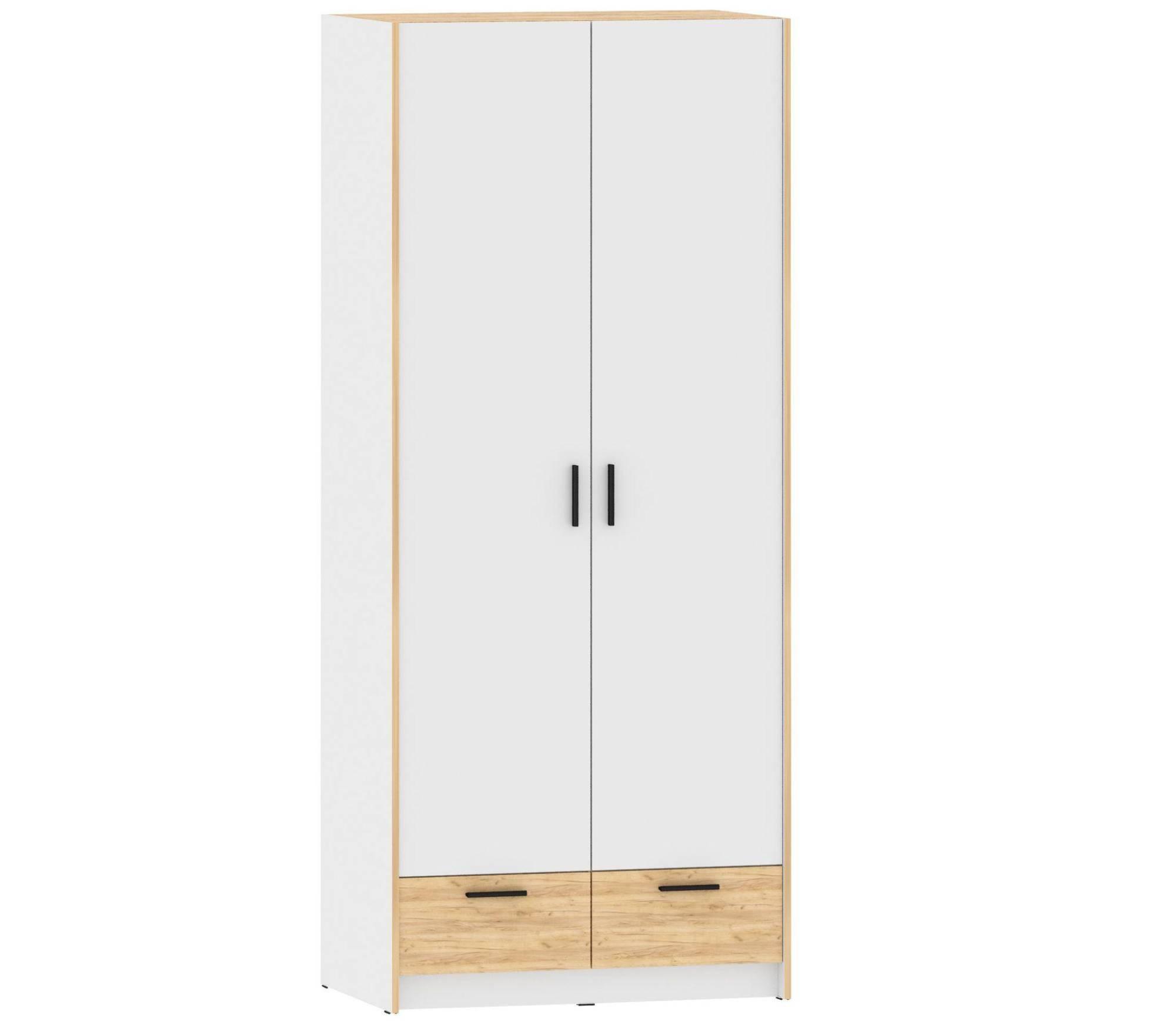 Распашной 2-х дверный шкаф для одежды оборудован штангой, полкой и 2-мя выдвижными ящиками на направляющих полного выдвижения.