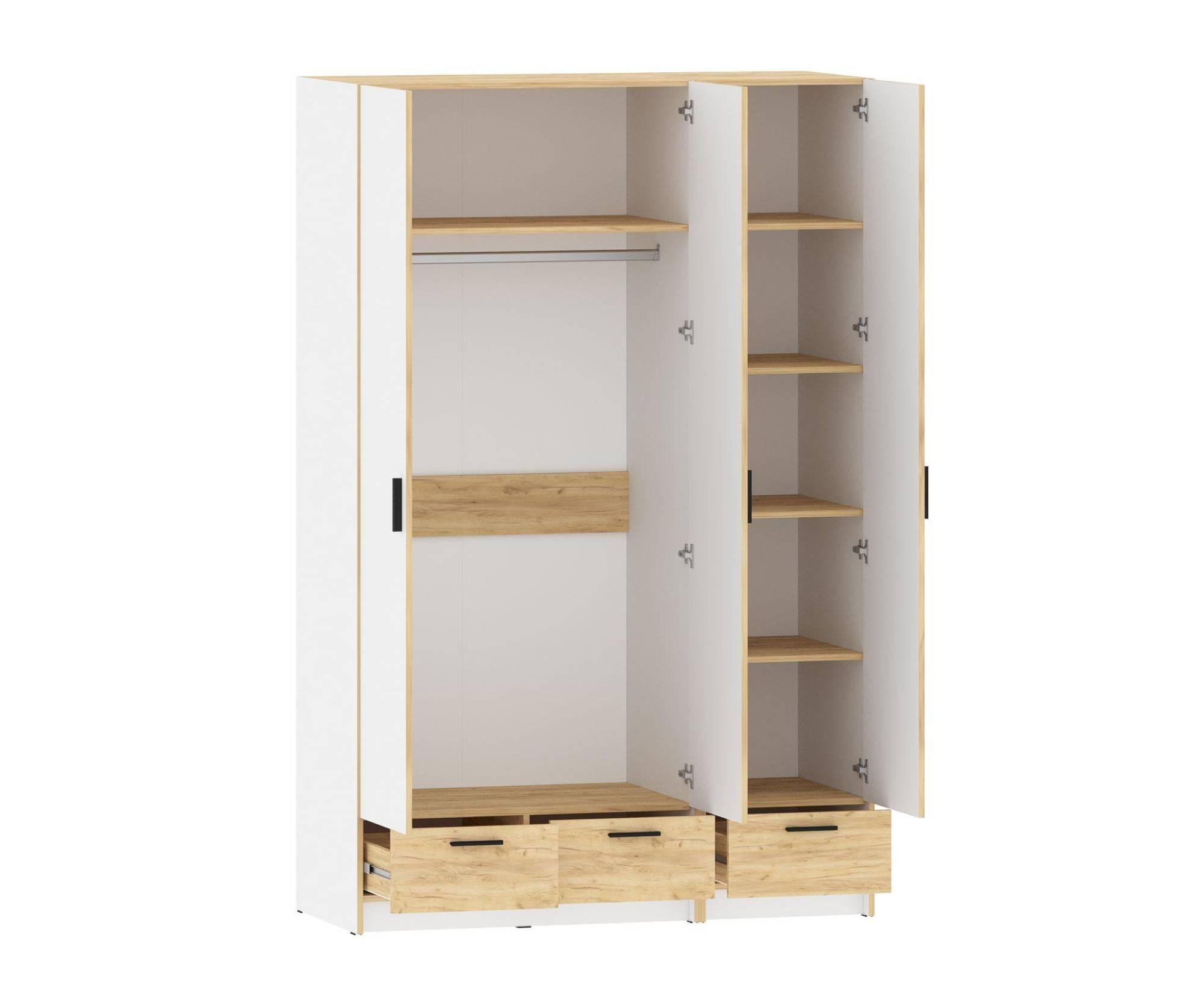 Распашной 2-х дверный шкаф для одежды оборудован штангой, полкой и 2-мя выдвижными ящиками на направляющих полного выдвижения.