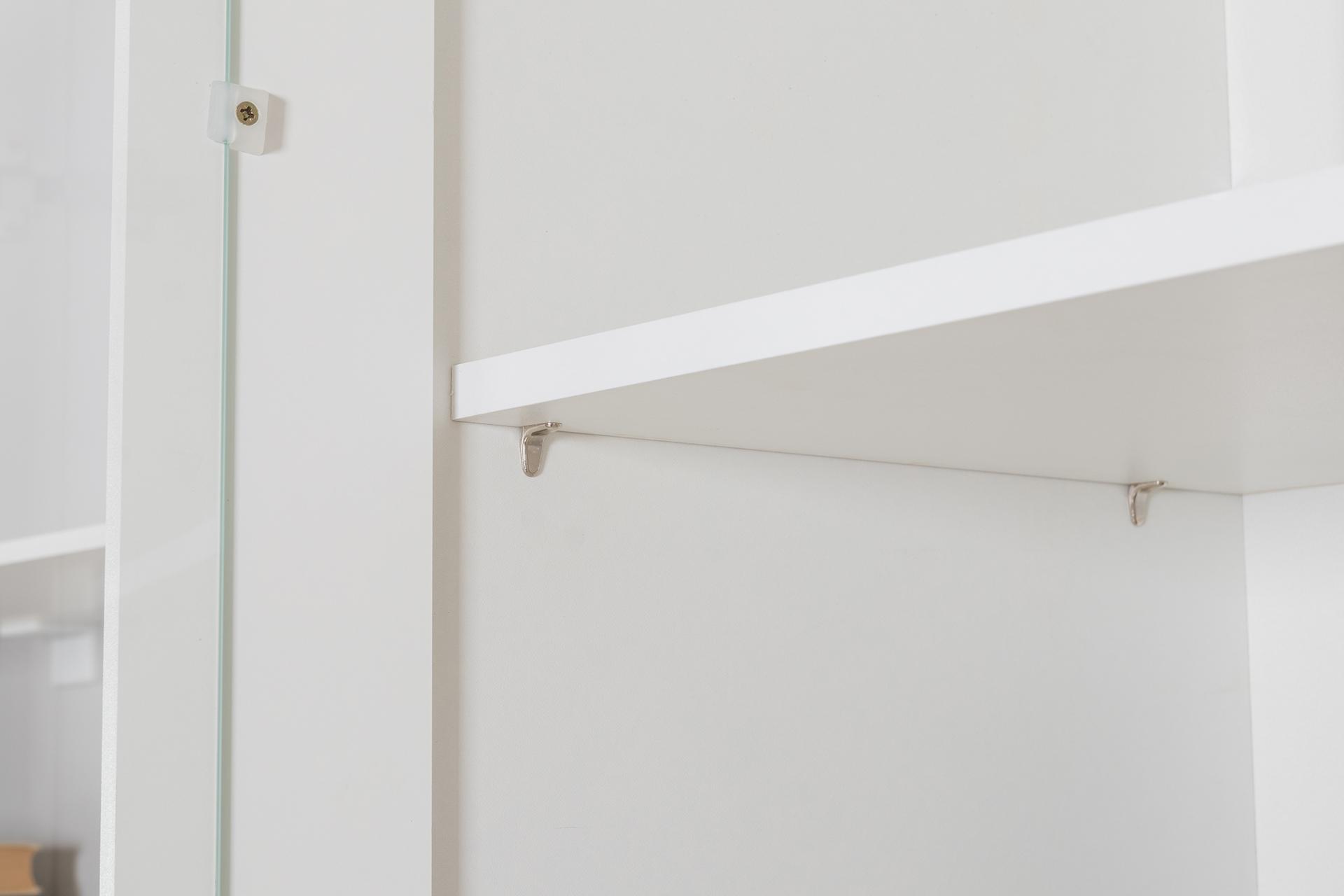 Модель оборудована 2-я распашными дверцами со стеклянными вставками в верхней части.