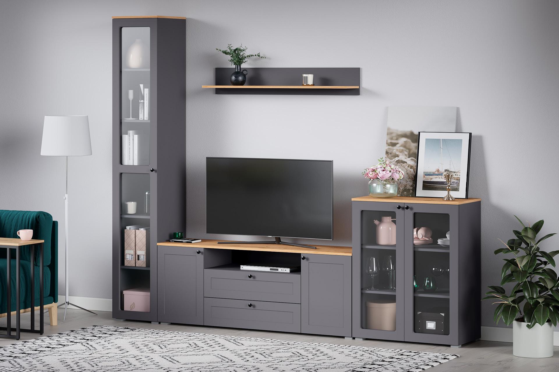 Остин Шкаф-витрина 16.394.03 графит/дуб золотой