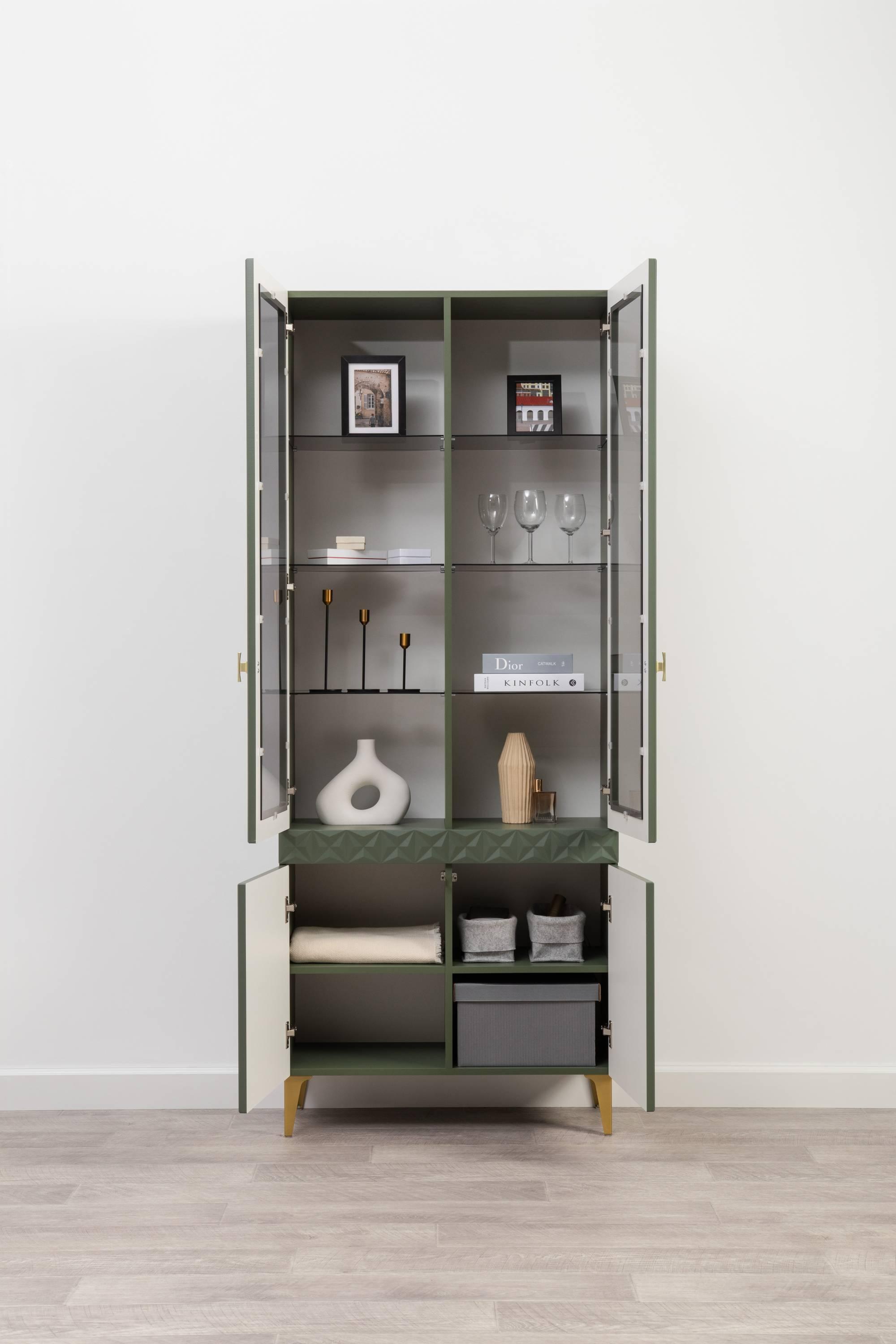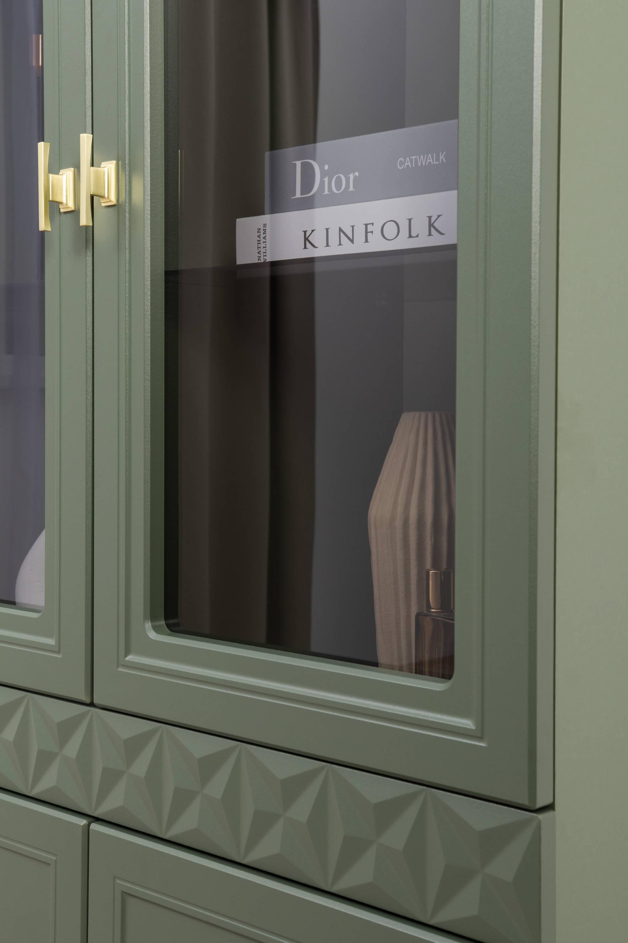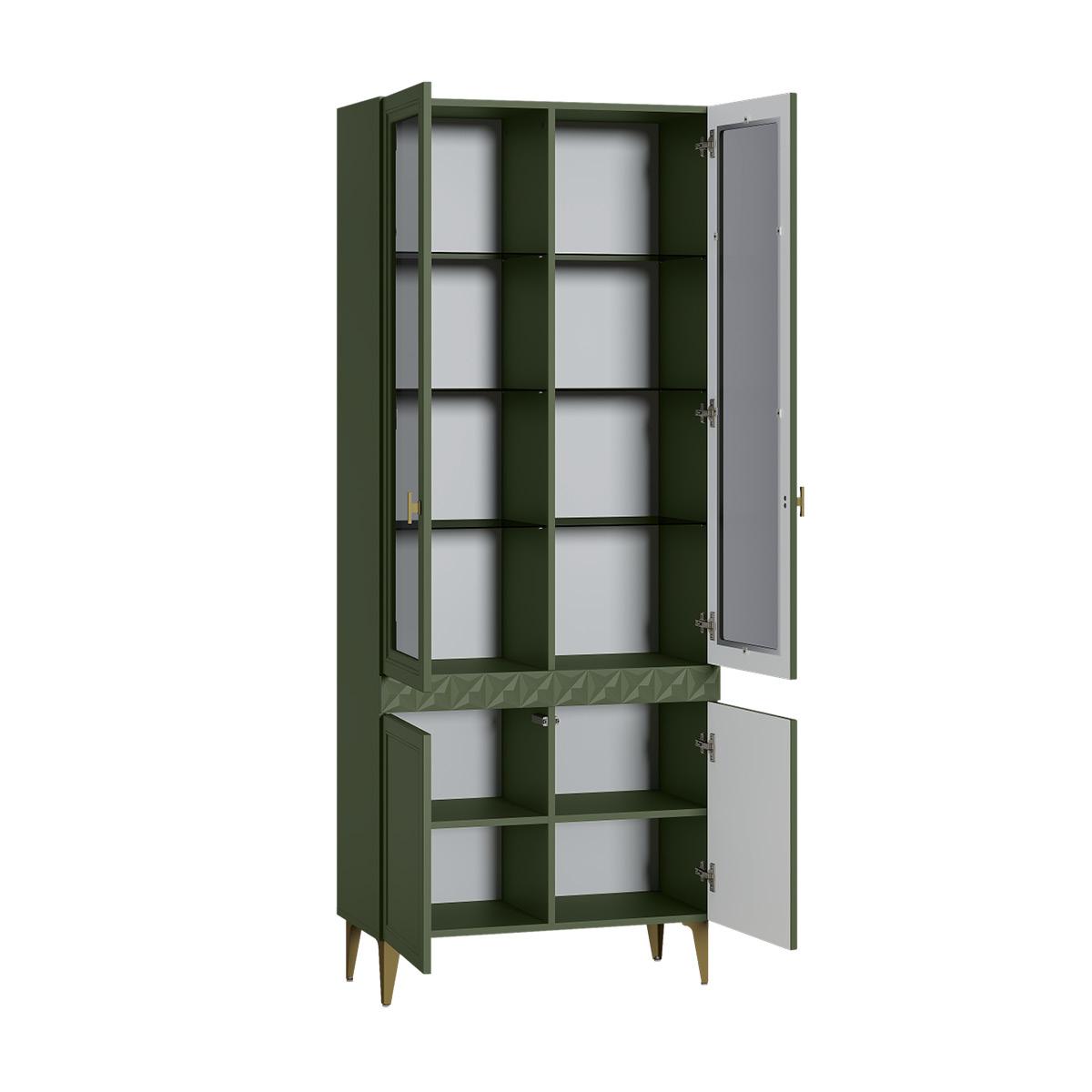 Шкаф-витрина Марион 16.397.02, Дымчатый Зеленый/Олива шагрень