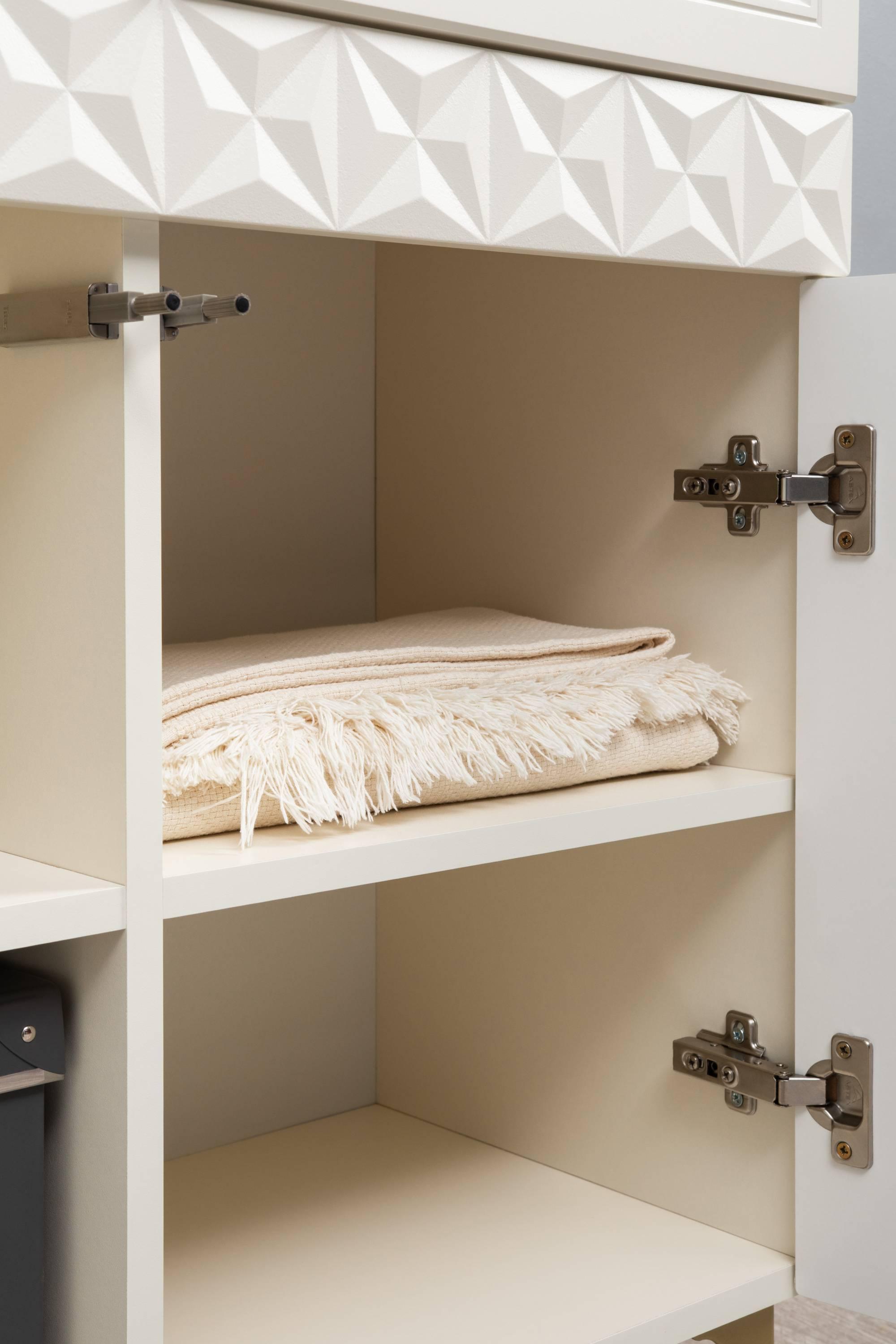 Нижняя дверка глухая, за которой полочки из ЛДСП.