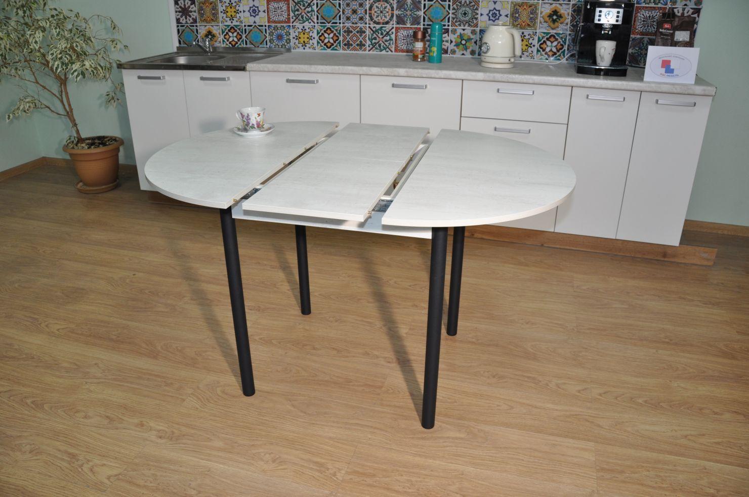 Стол легко раздвигается. Стол с круглой столешницей, которая легко превращается в овальную.
