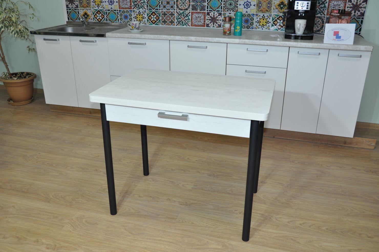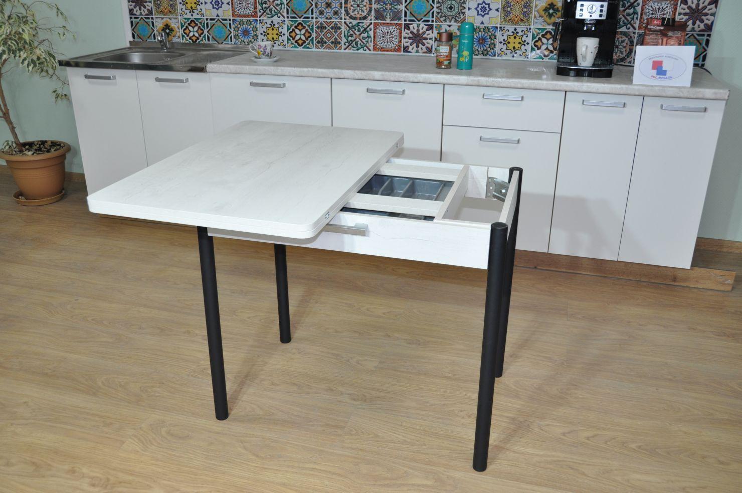 У стола раскладная столешница с размером в разложенном виде 900 х 1200 мм.