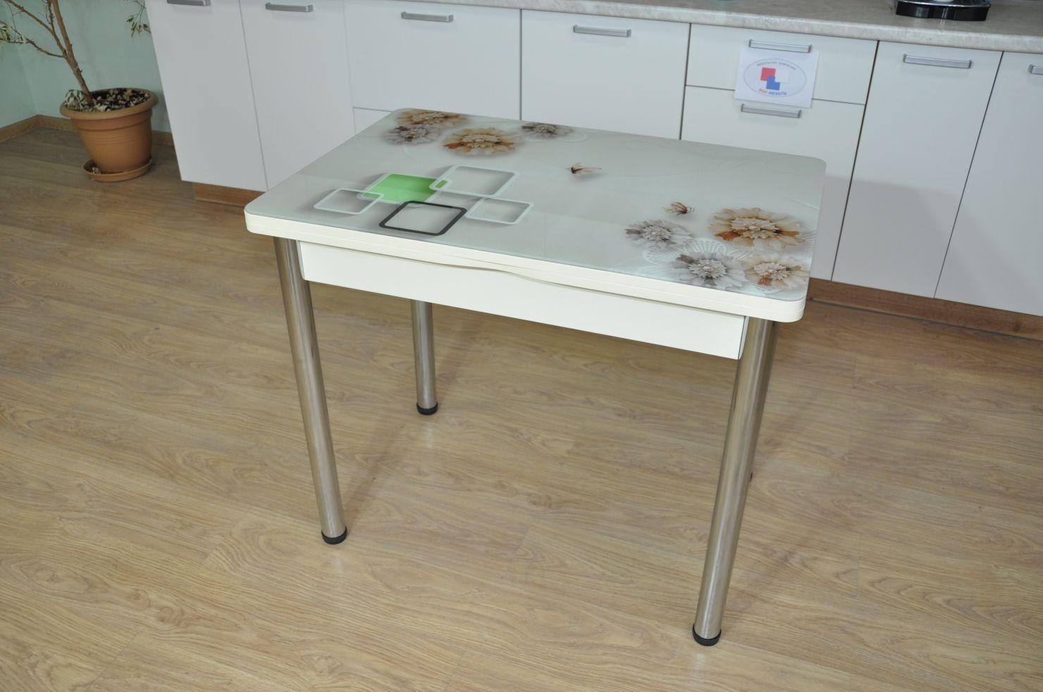 столешница изготовлена из ЛДСП 16 мм и стекло с фотопечатью 4 мм.