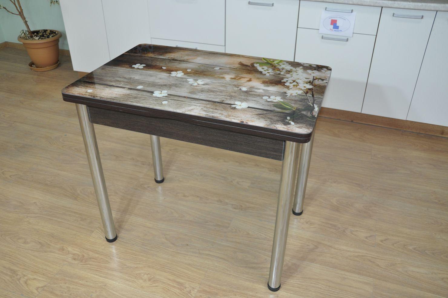 столешница изготовлена из ЛДСП 16 мм и стекло с фотопечатью 4 мм.