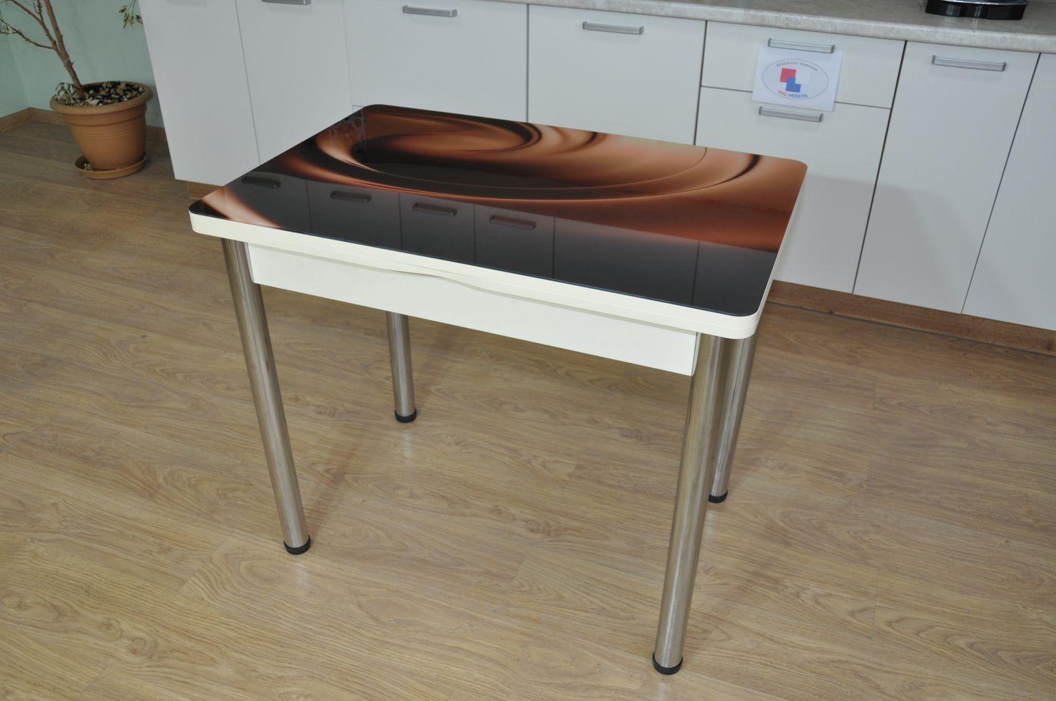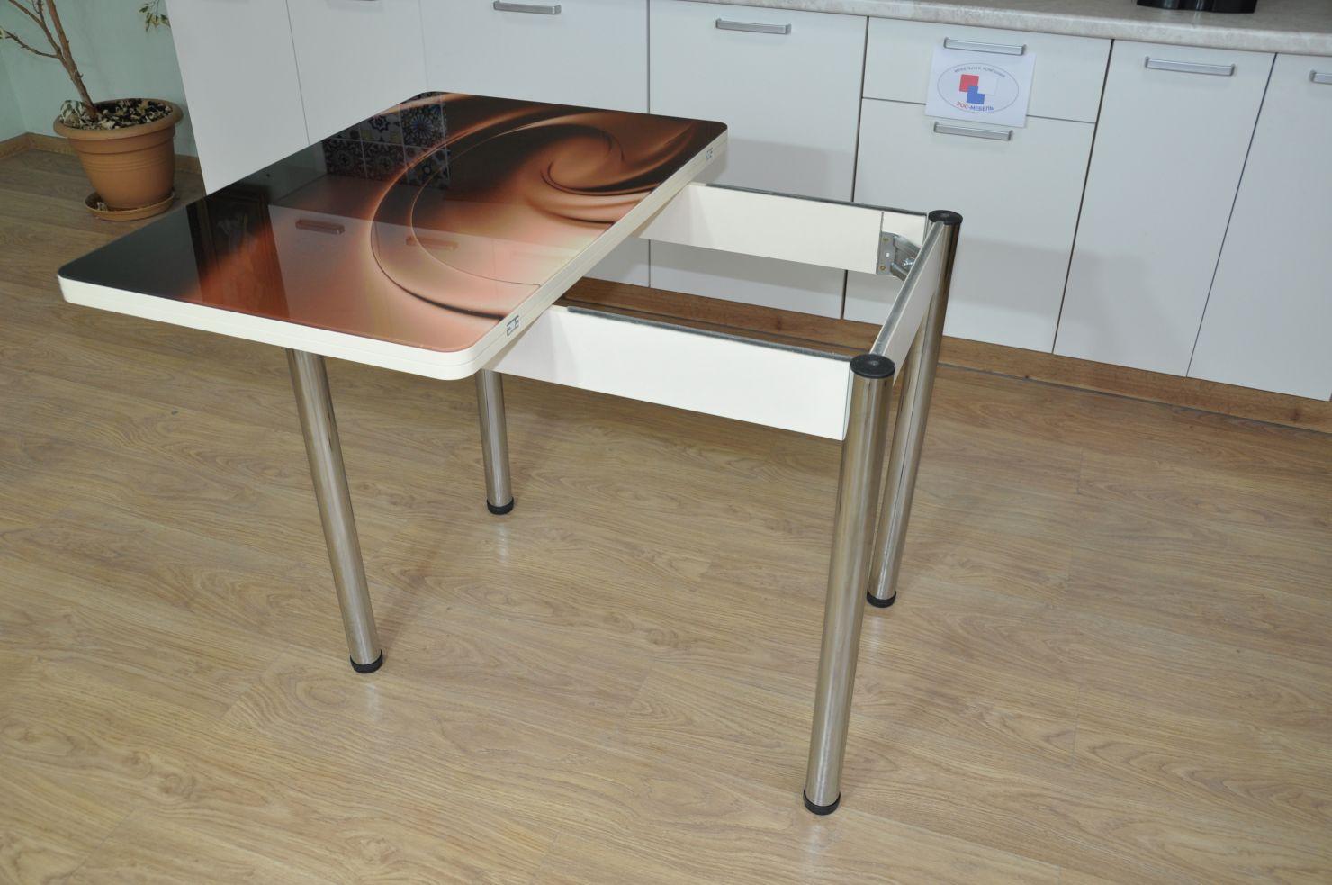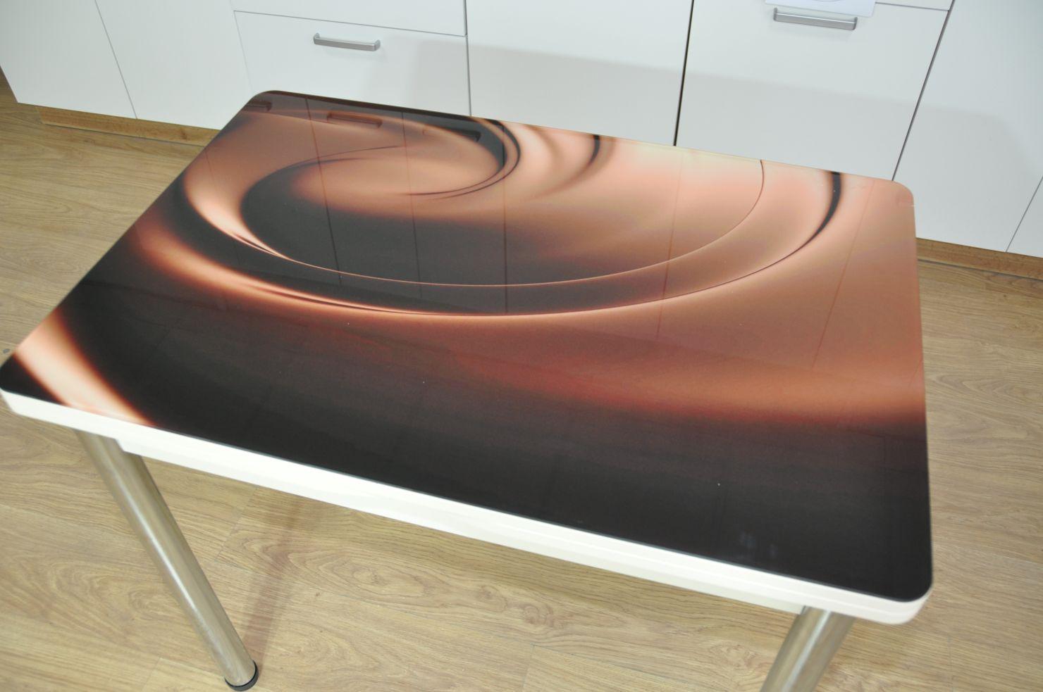 столешница изготовлена из ЛДСП 16 мм и стекло с фотопечатью 4 мм.