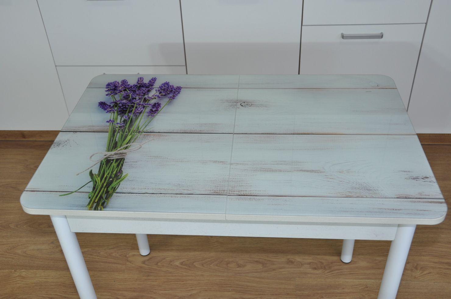 Стол обеденный раздвижной Нью йорк фотопечать / бетон белый Букет / опора круглая муар белый