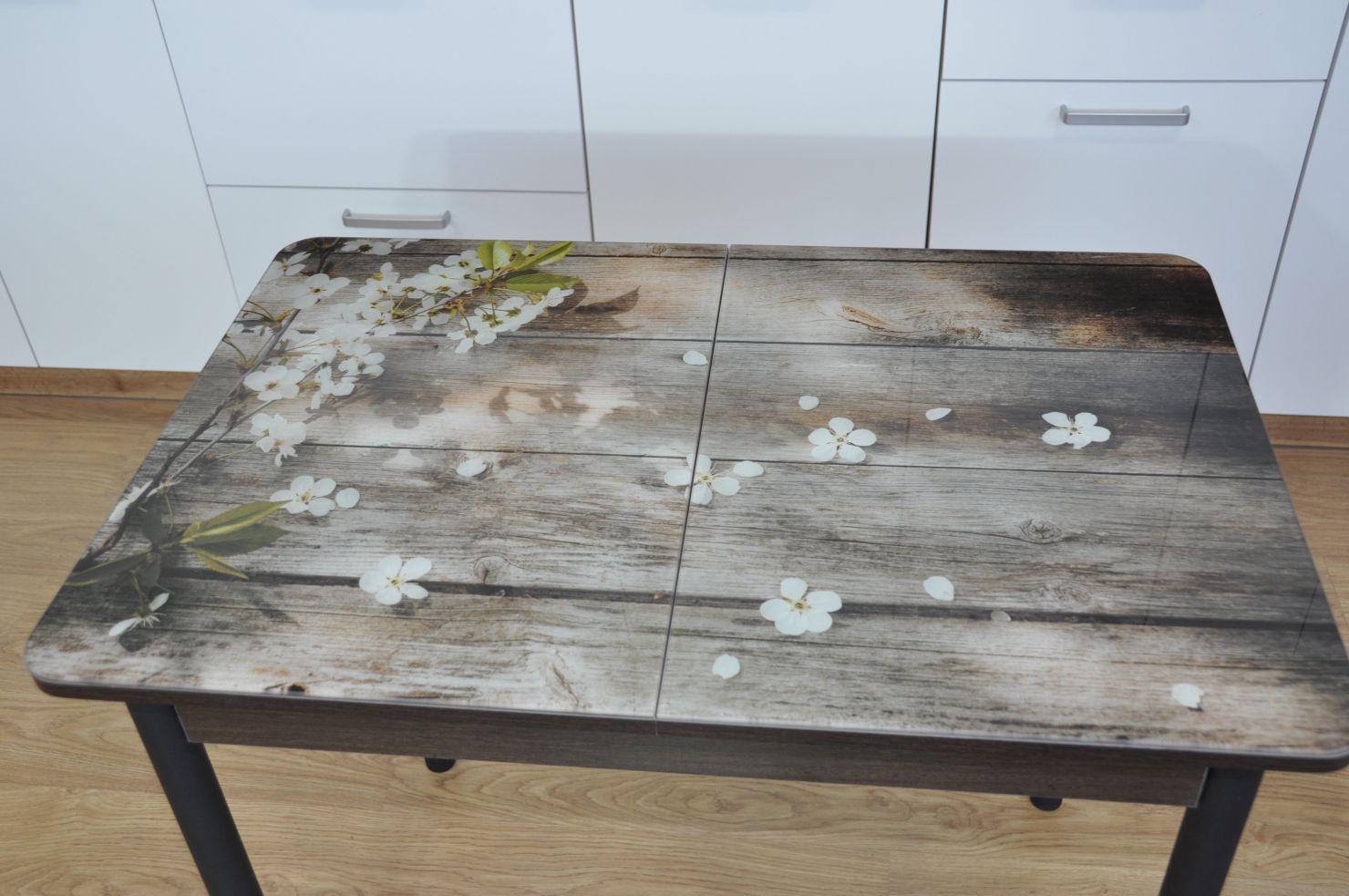 Стол обеденный раздвижной Нью йорк фотопечать / Цветы на досках / опора круглая муар черный