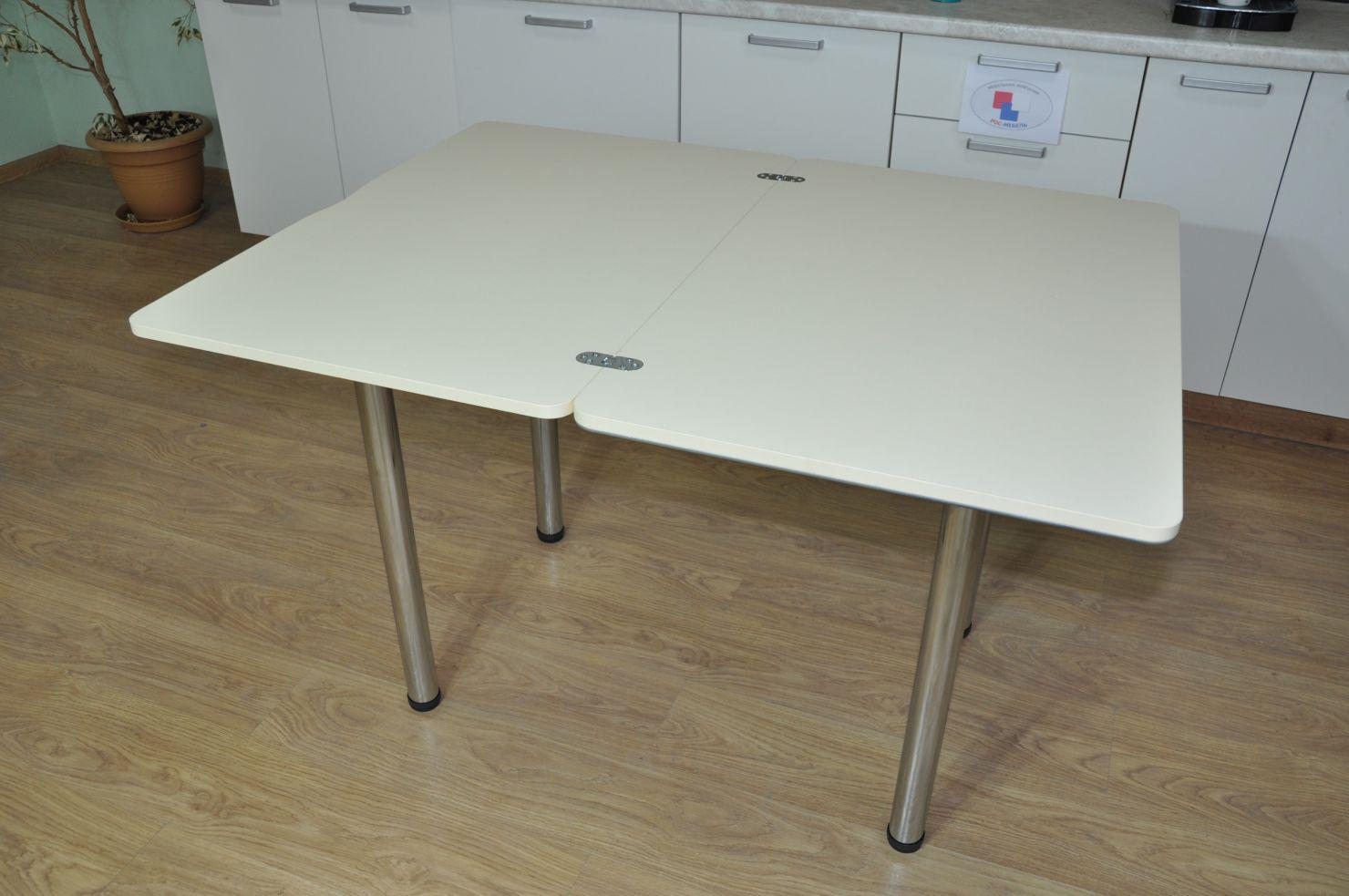 Стол обеденный поворотно раскладной фотопечать Симпл / дуб молочный Ирис/опора Хром