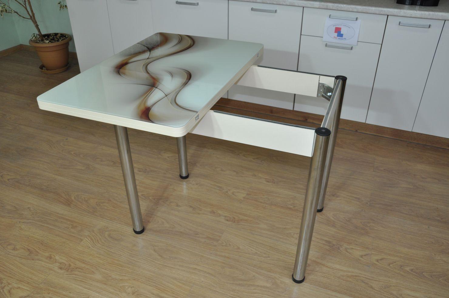 Стол обеденный поворотно раскладной фотопечать Симпл / Текстура 032/опора Хром