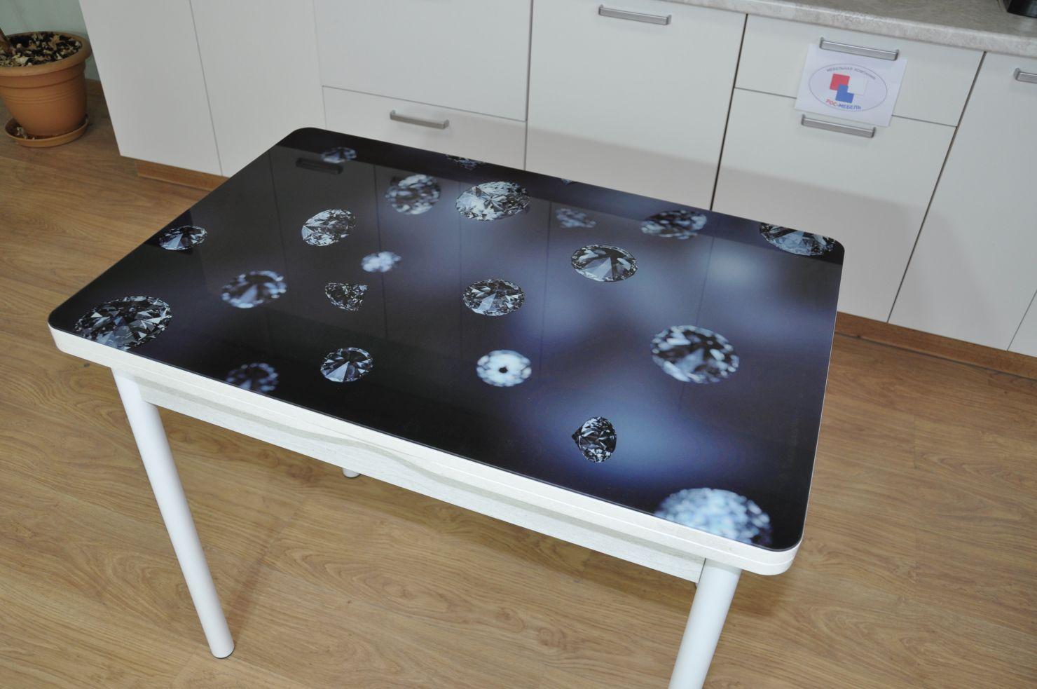 Стол обеденный поворотно раскладной фотопечать Симпл / бетон белый Кристаллы / опора круглая муар белый