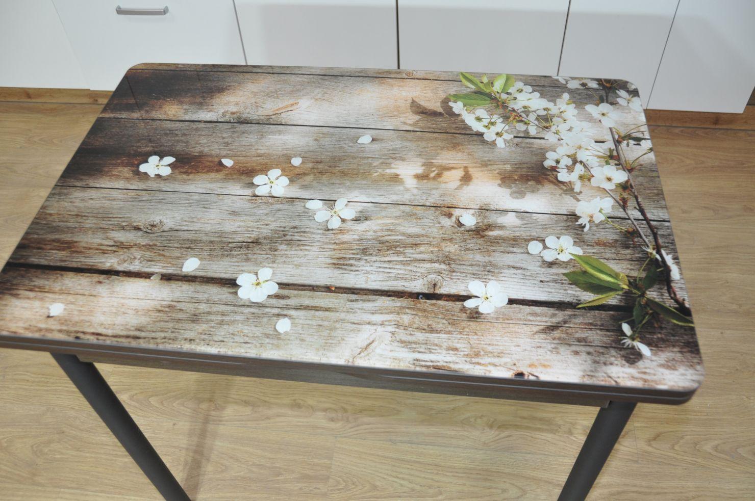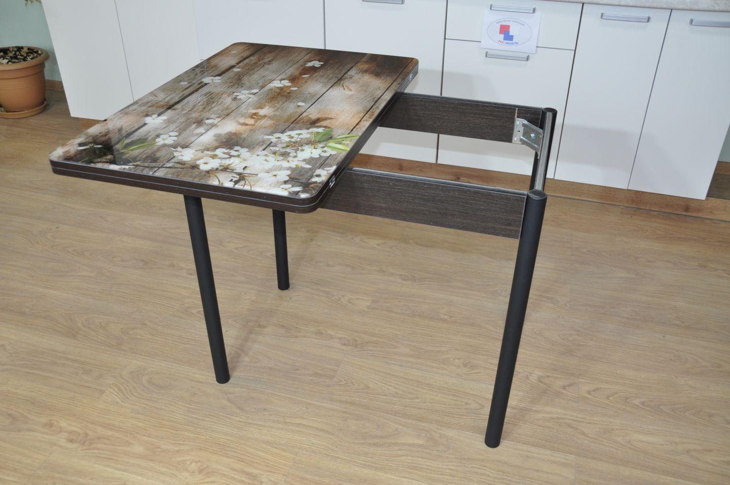 Стол обеденный поворотно раскладной фотопечать Симпл / Цветы на досках/опора №2 черная