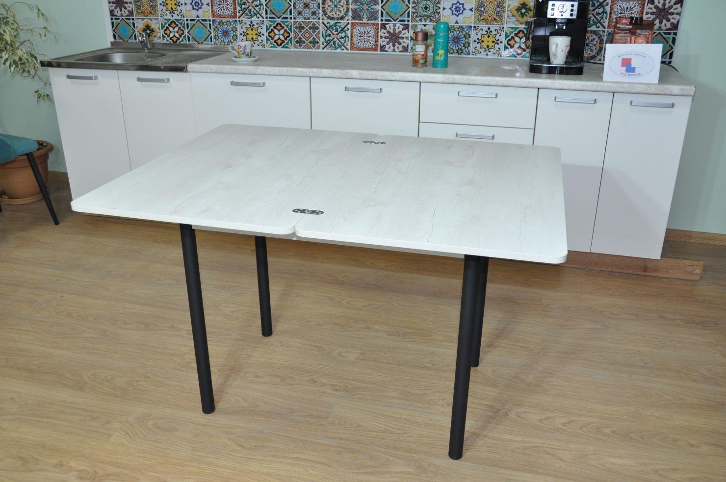 Стол обеденный раскладной СИМПЛ / Бетон пайн белый /Опора № 2-круглая муар черный