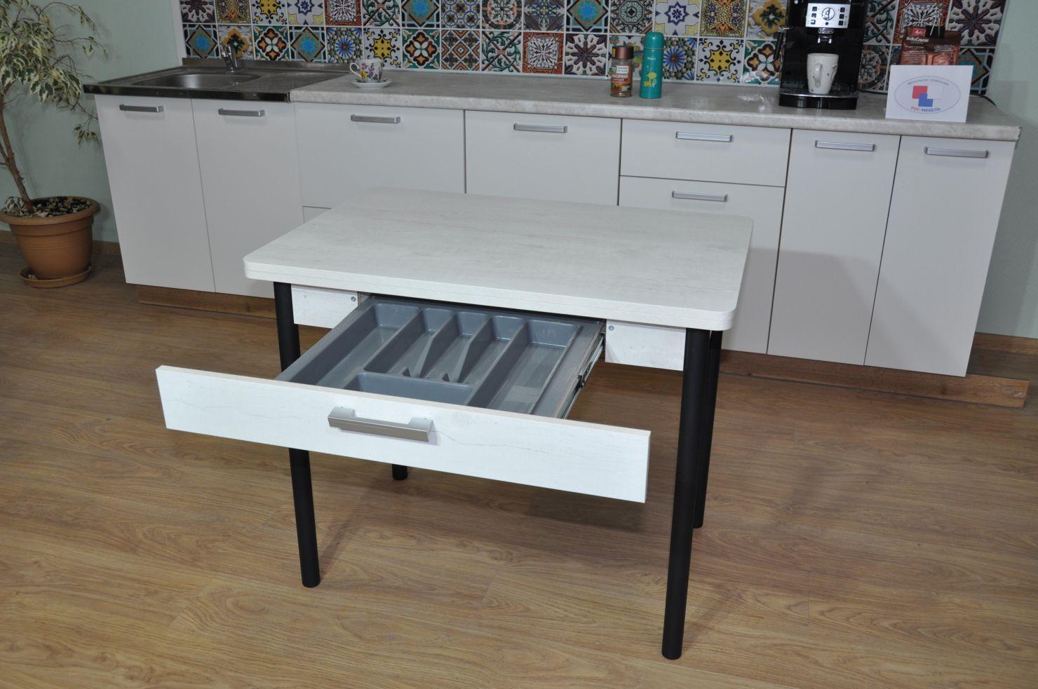 Стол обеденный СИМПЛ с ящиком / Бетон пайн белый /Опора № 2-черная