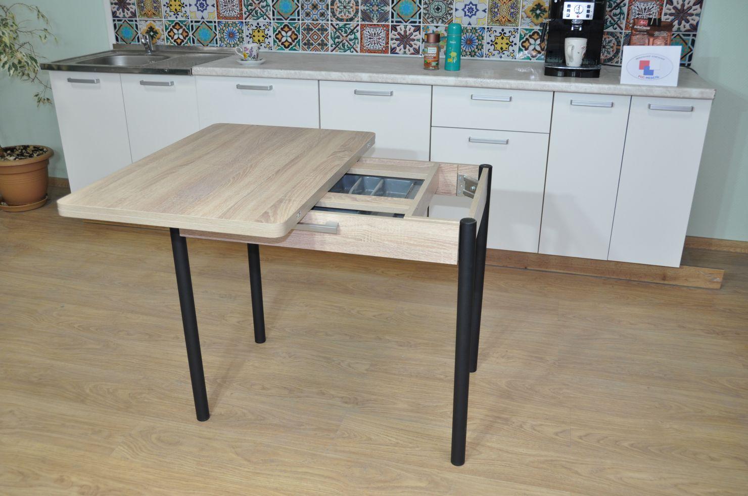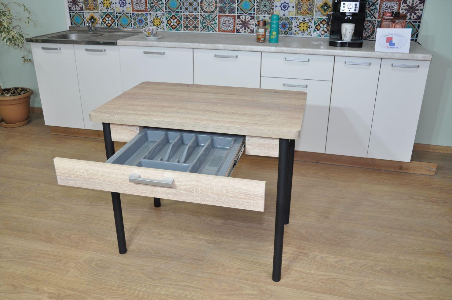 Стол обеденный СИМПЛ с ящиком / Дуб сонома/Опора № 2- черная