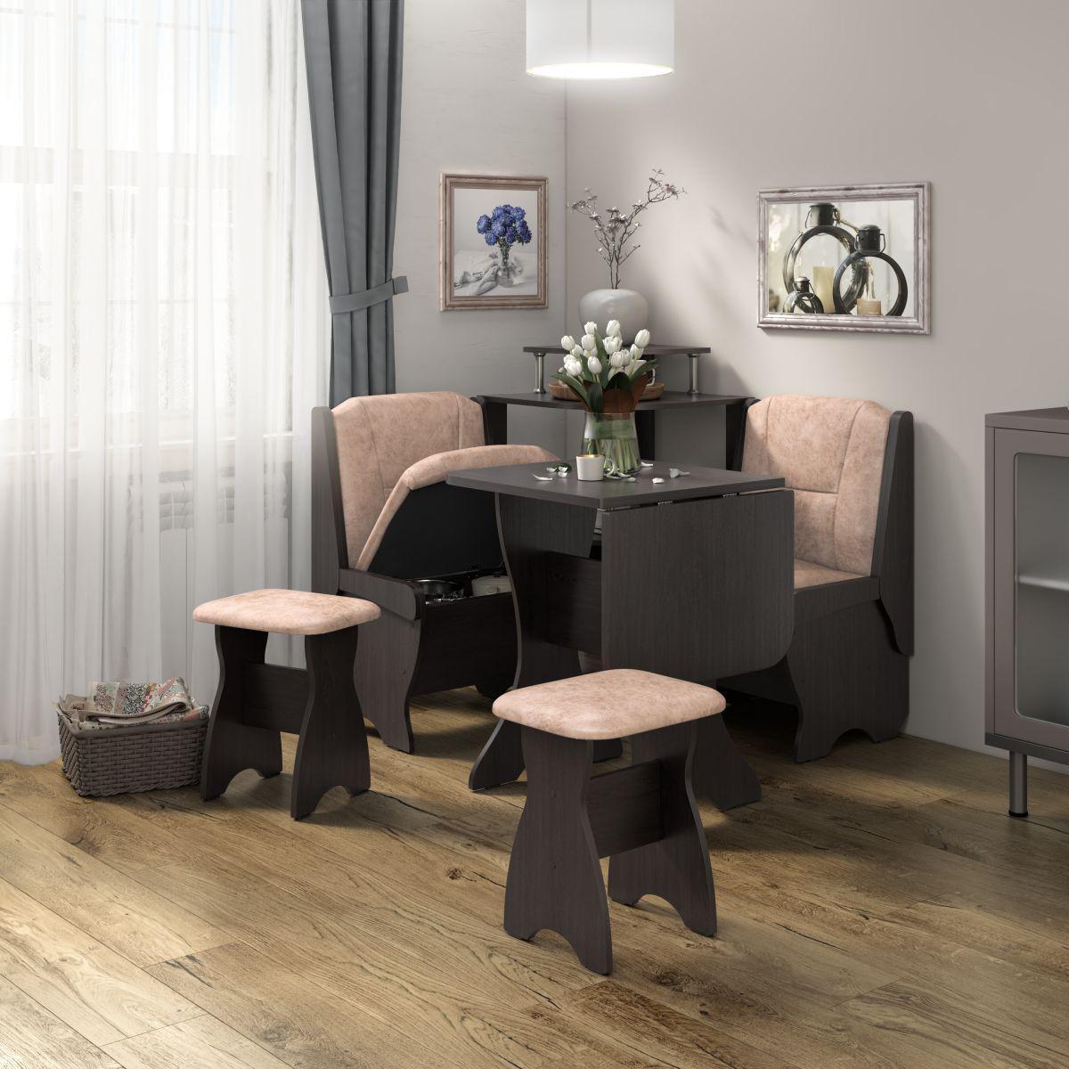 Кухонный набор скамья Лотос 550+550+Стол СКР-1+табурет Тюльпан-2 шт.+Этажерка / Венге / Велюр Латте