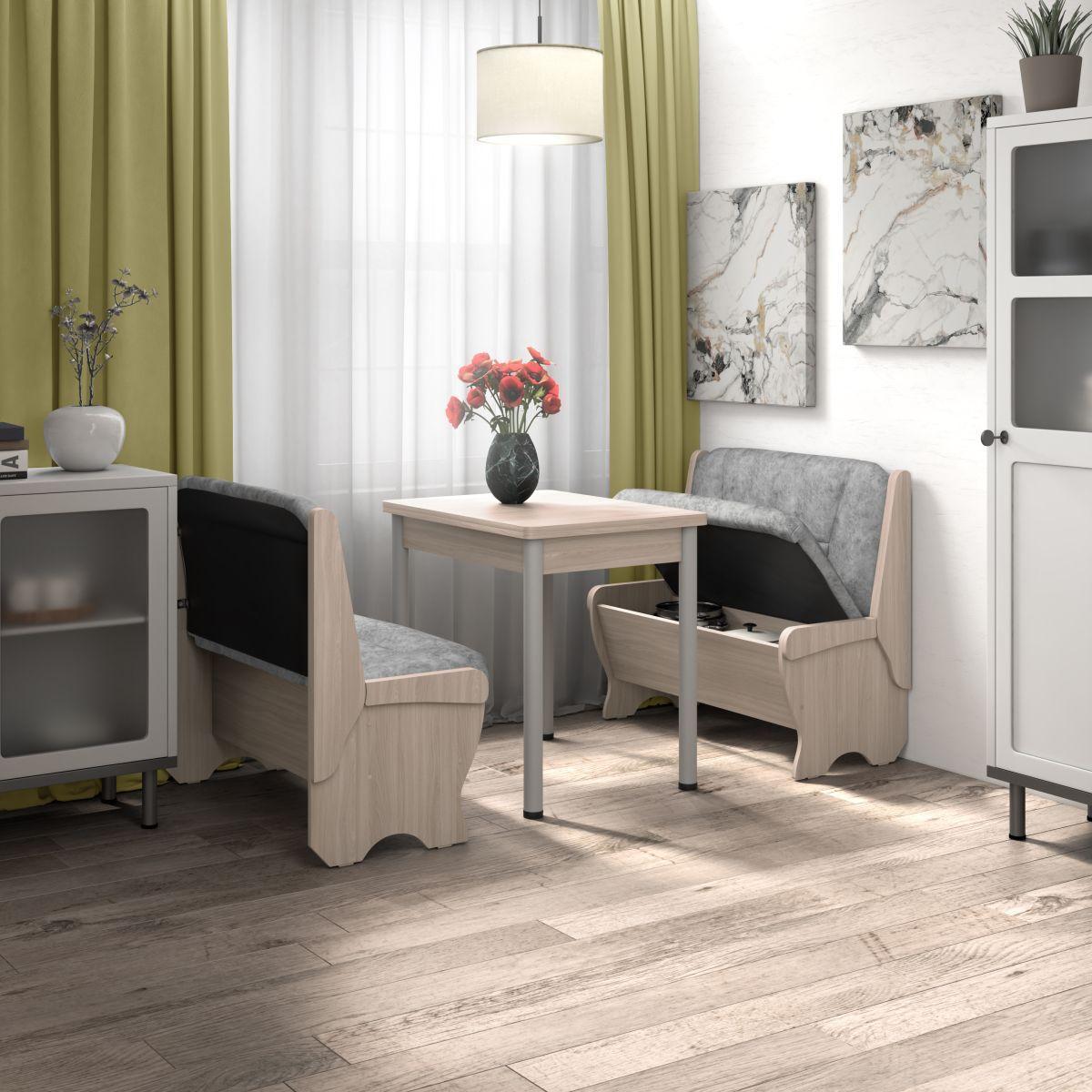 Кухонный набор Лотос ( Лотос 950 2 шт. + стол Ирис / черные опоры) Ясень / Велюр Графит
