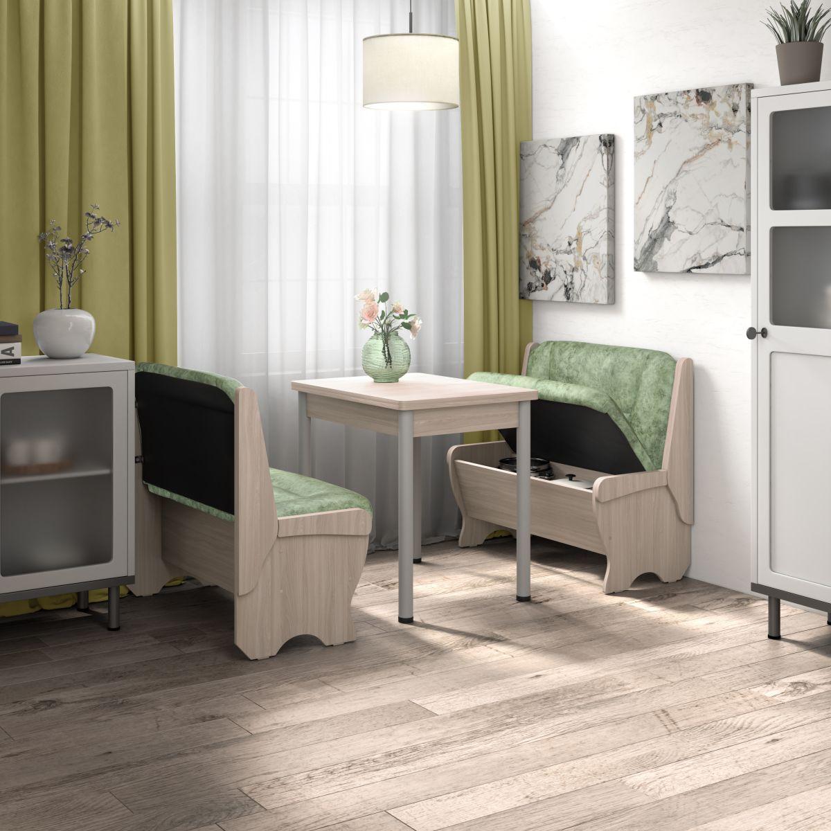Кухонный набор Лотос ( Лотос 950 2 шт. + стол Ирис / черные опоры) Ясень / Велюр Мохито