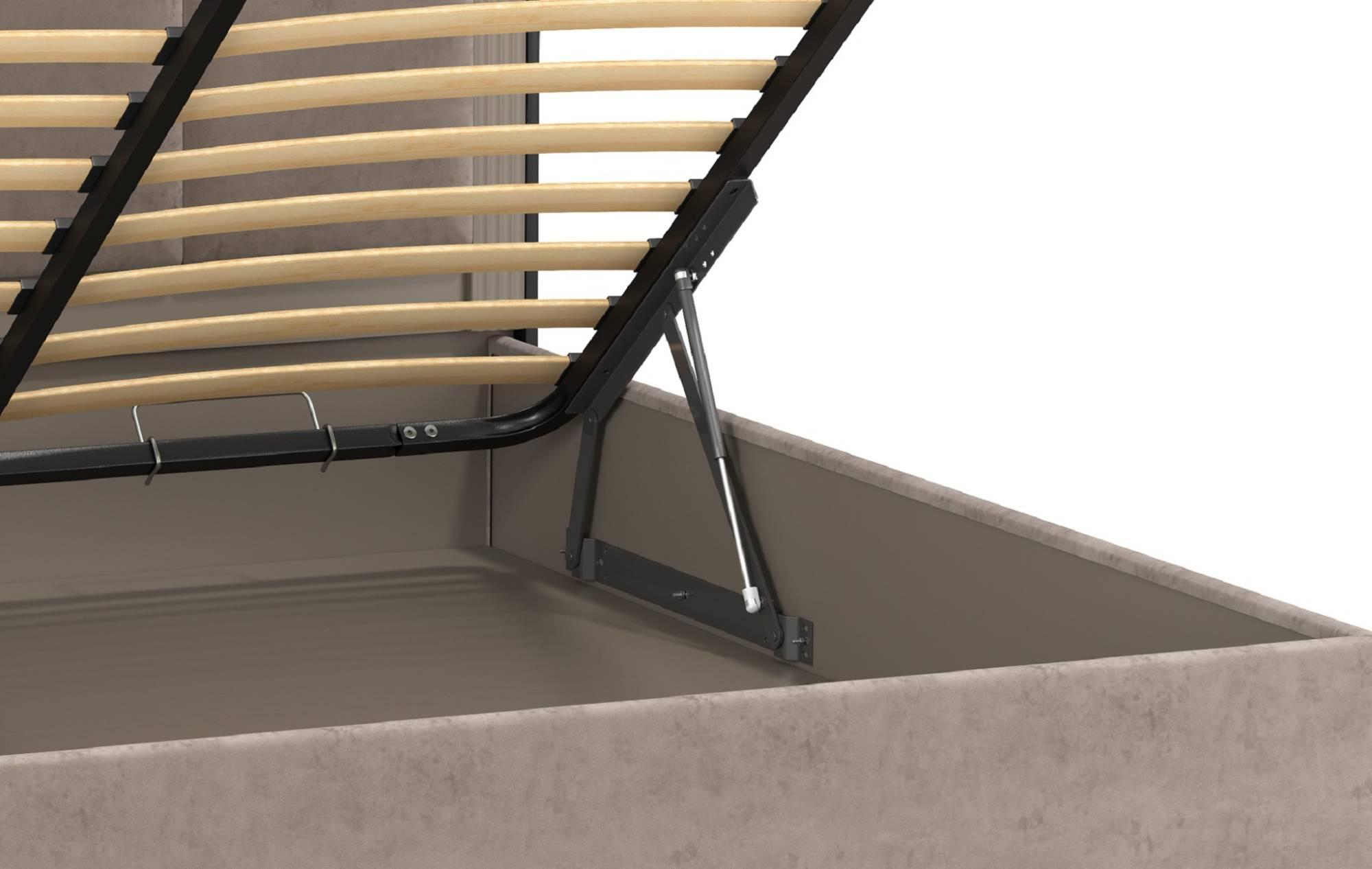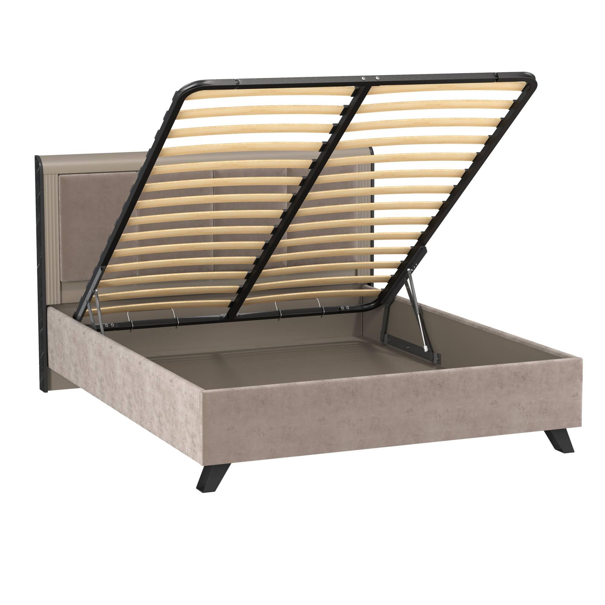 В составе набора кровать с подъемным механизмом. Удобная модель кровати с высоким мягким изголовьем. Изголовье кровати изготовлено из ткани Велюр Тенерифе, цвет хумус.