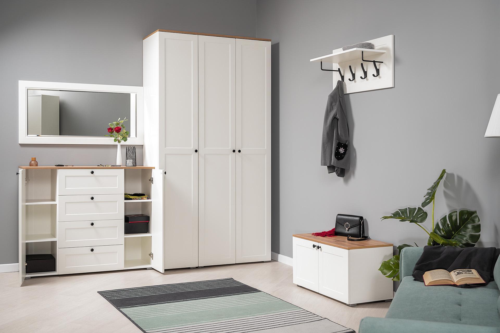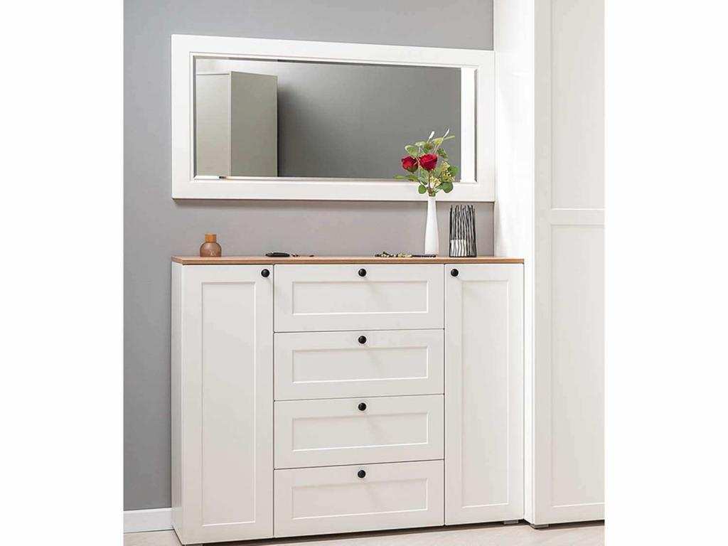 Остин Комод 16.221 Белый шагрень/Дуб Вотан