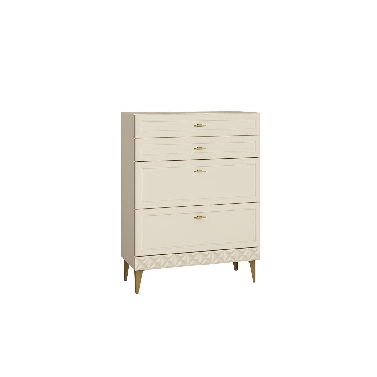 Классическая модель комода на высоких опорах имеет 4 выдвижных ящика разного размера.
