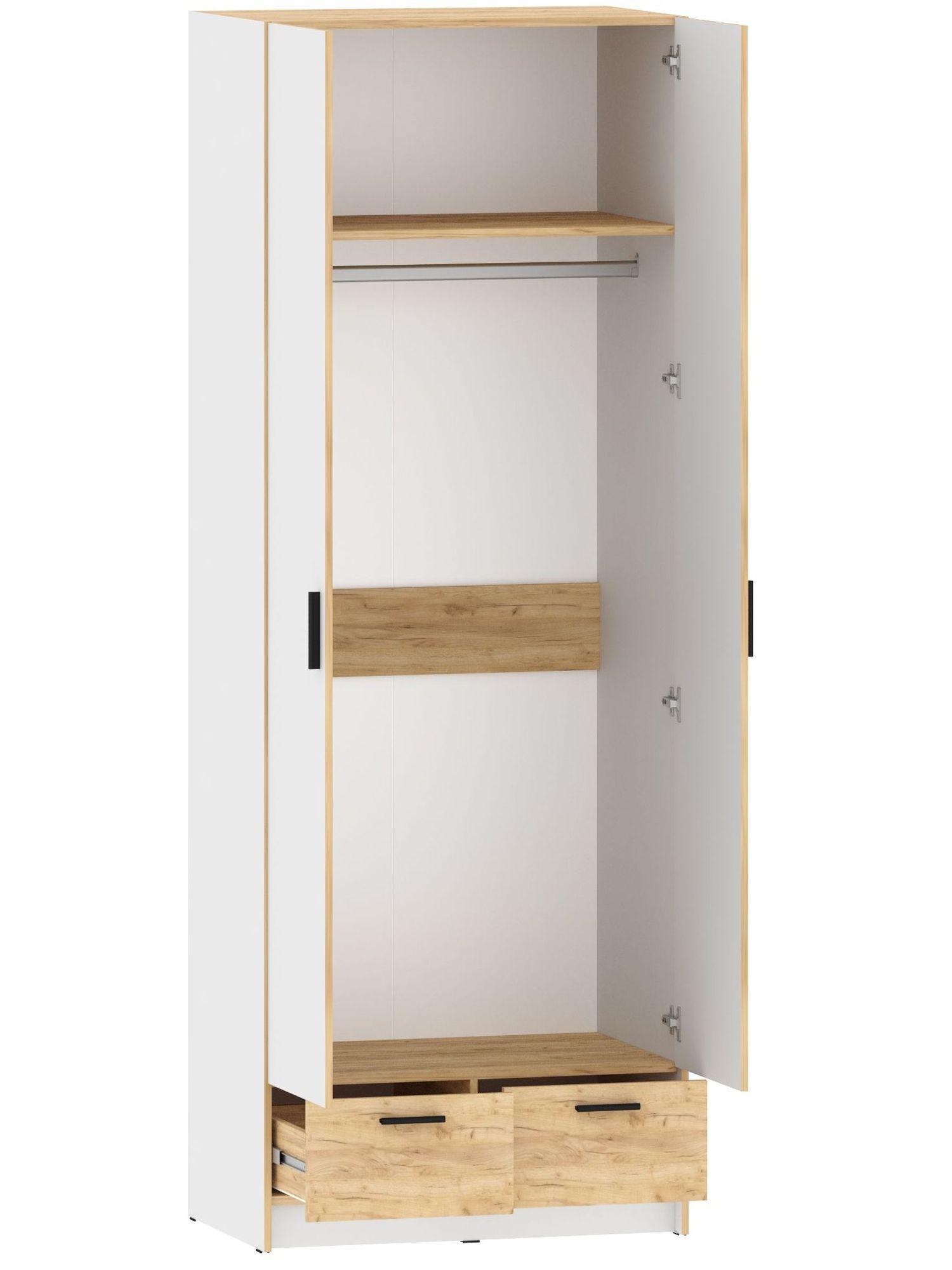 Шкаф оснащается гардеробной полкой и горизонтальной штангой для плечиков с одеждой.